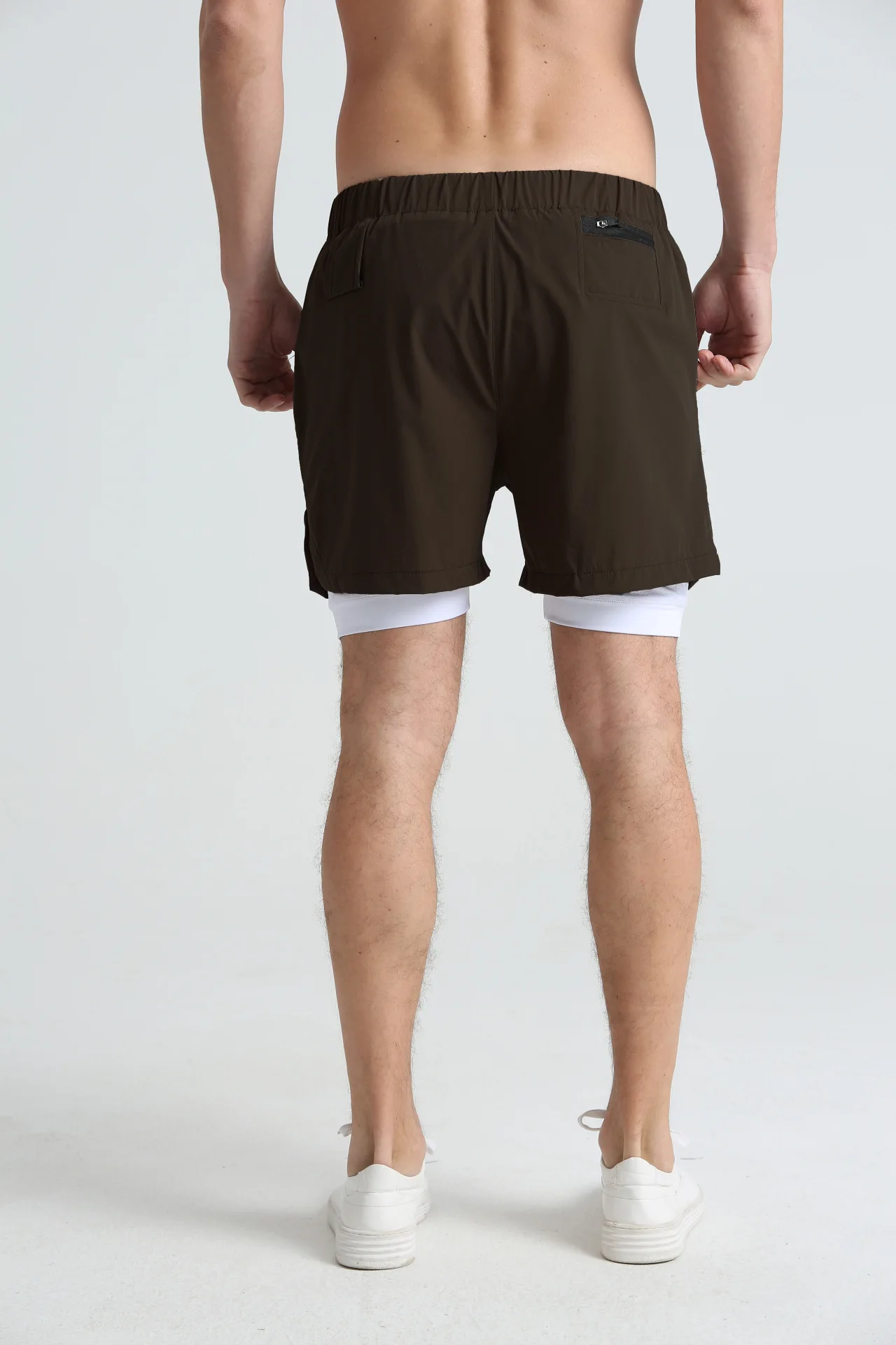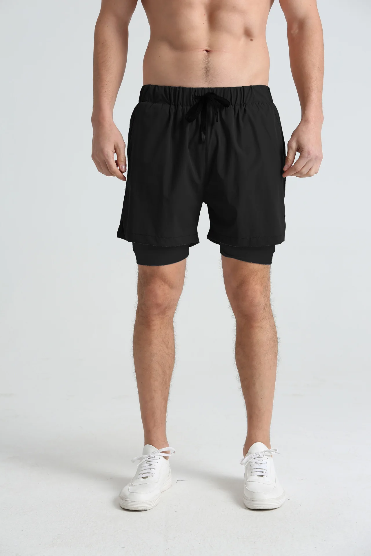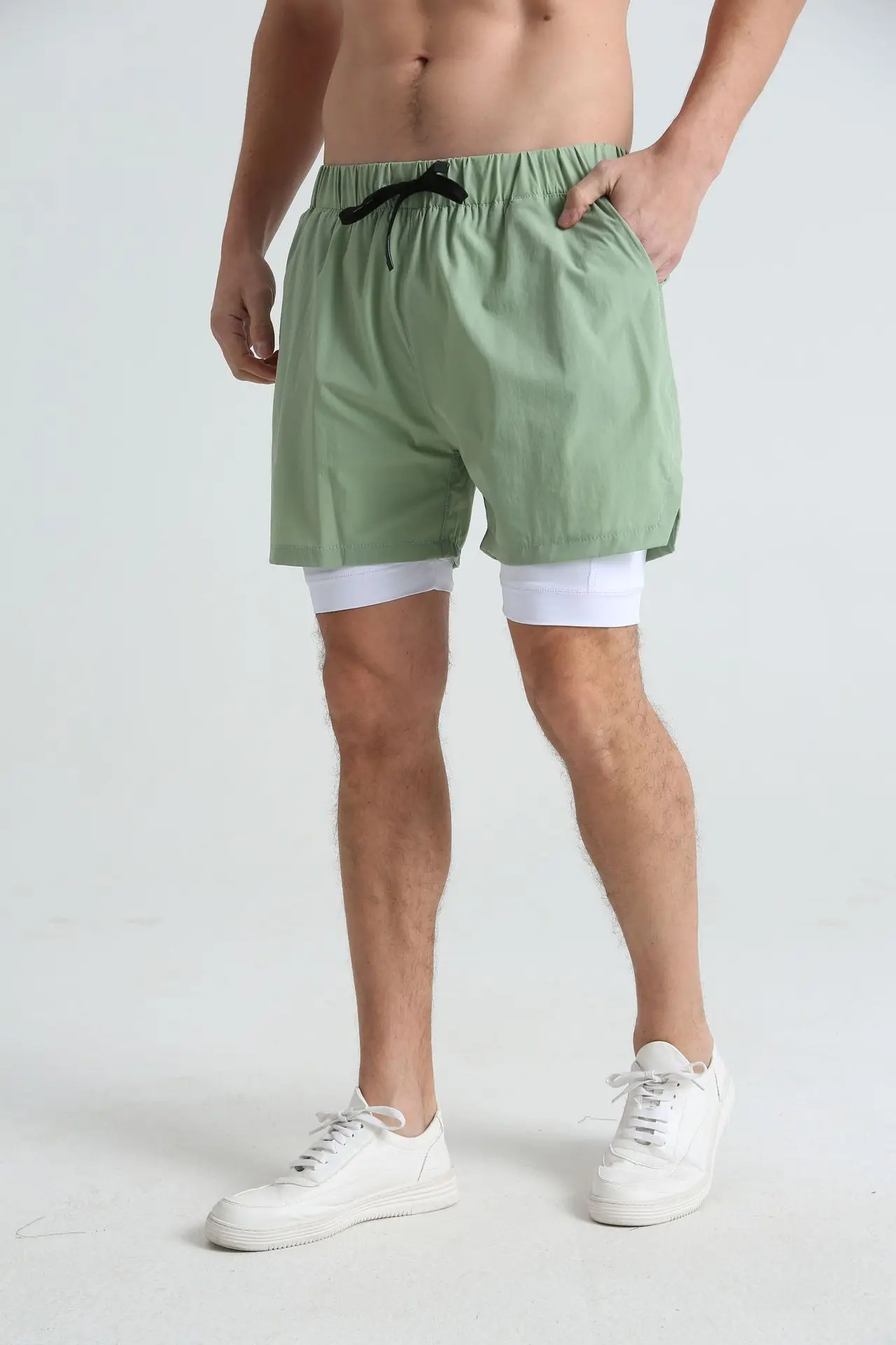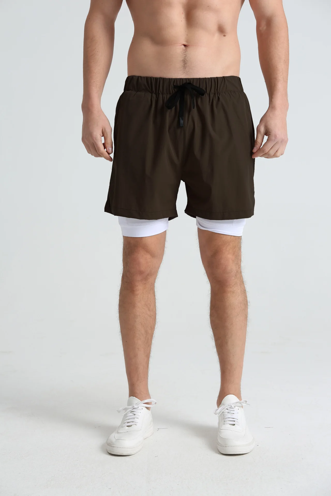 Men's sports double-deck shorts Fitness Quick Dry Training Shorts Casual 2 In 1 Multi-pocket sweatpants Men Gyms Running shorts