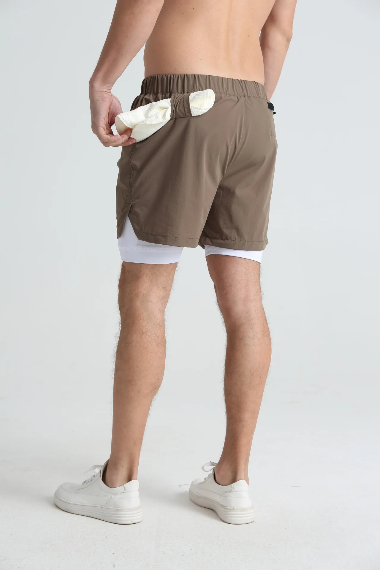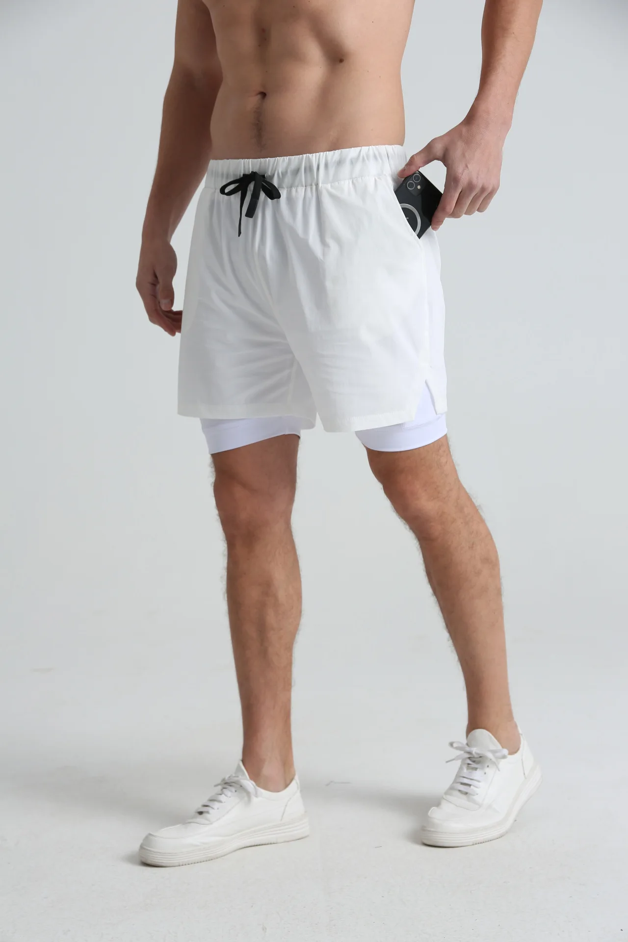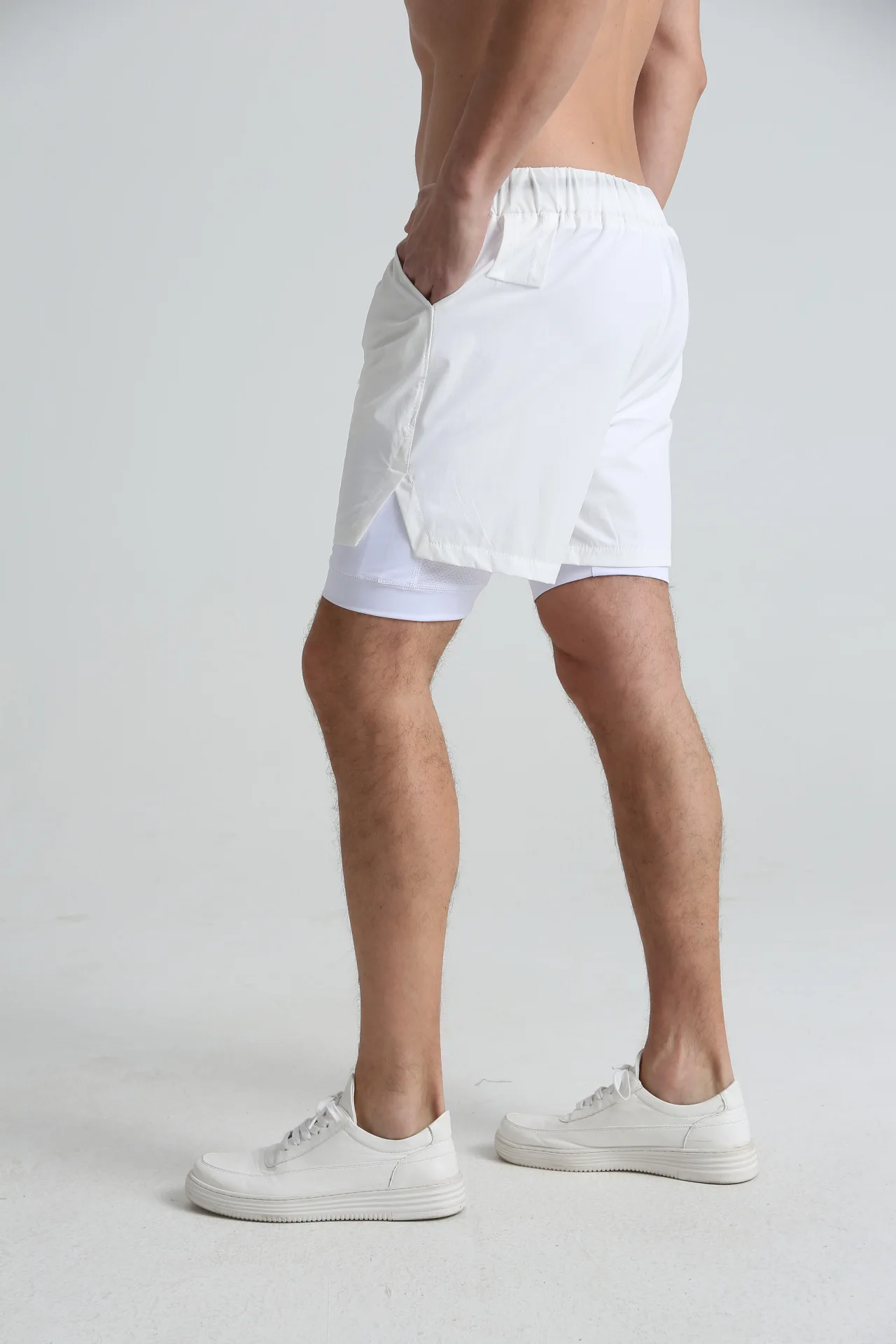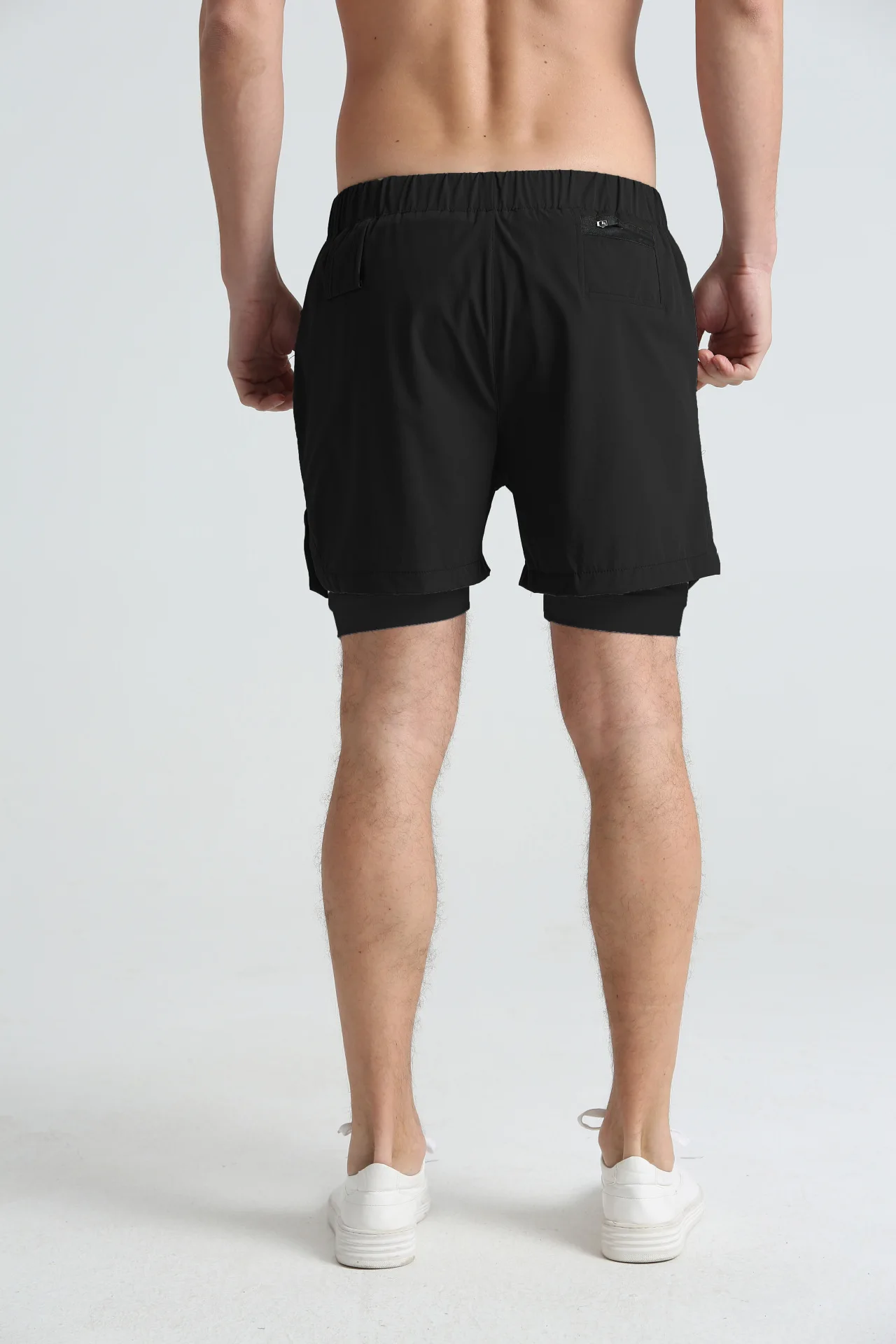 Men's sports double-deck shorts Fitness Quick Dry Training Shorts Casual 2 In 1 Multi-pocket sweatpants Men Gyms Running shorts