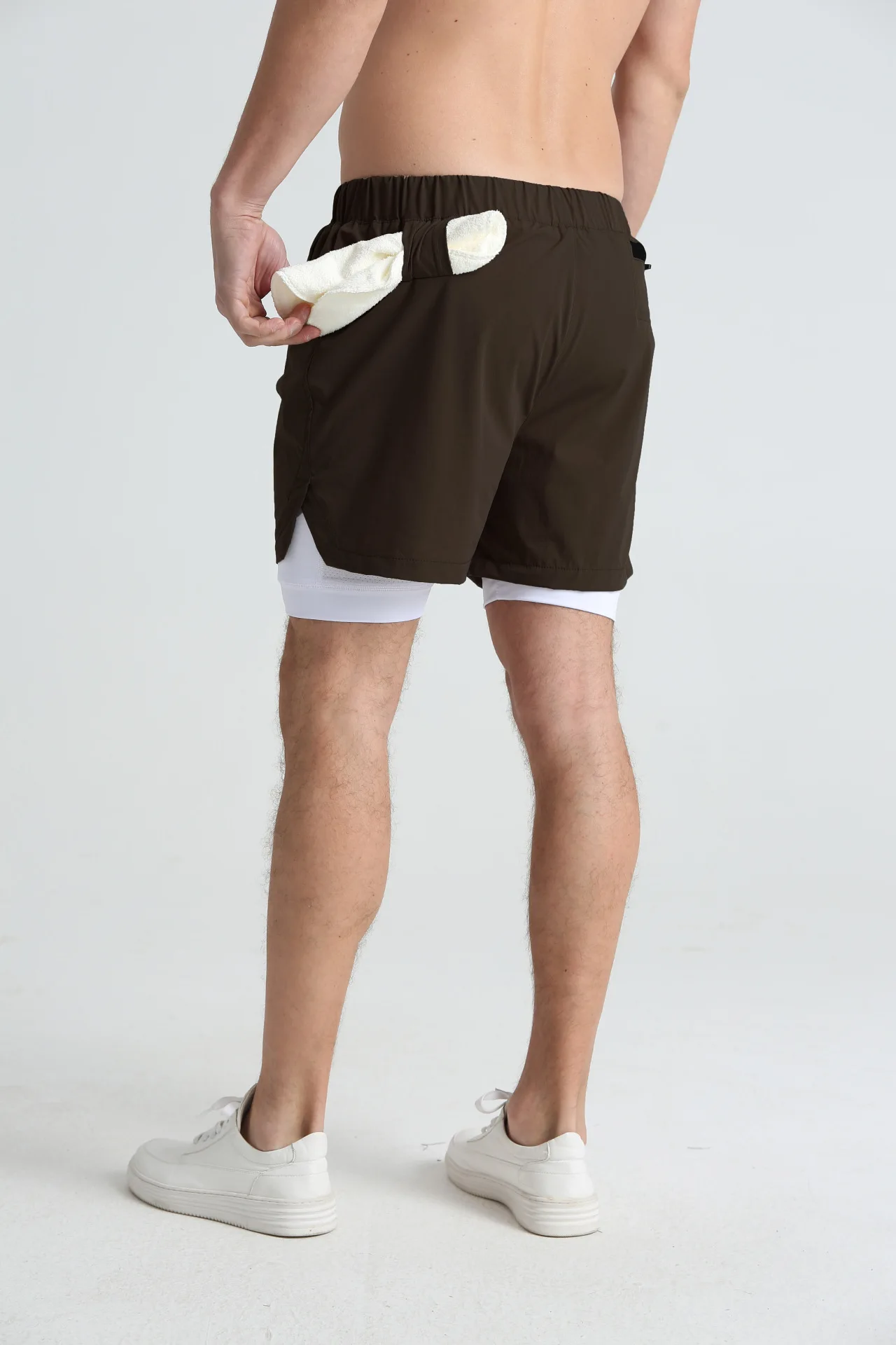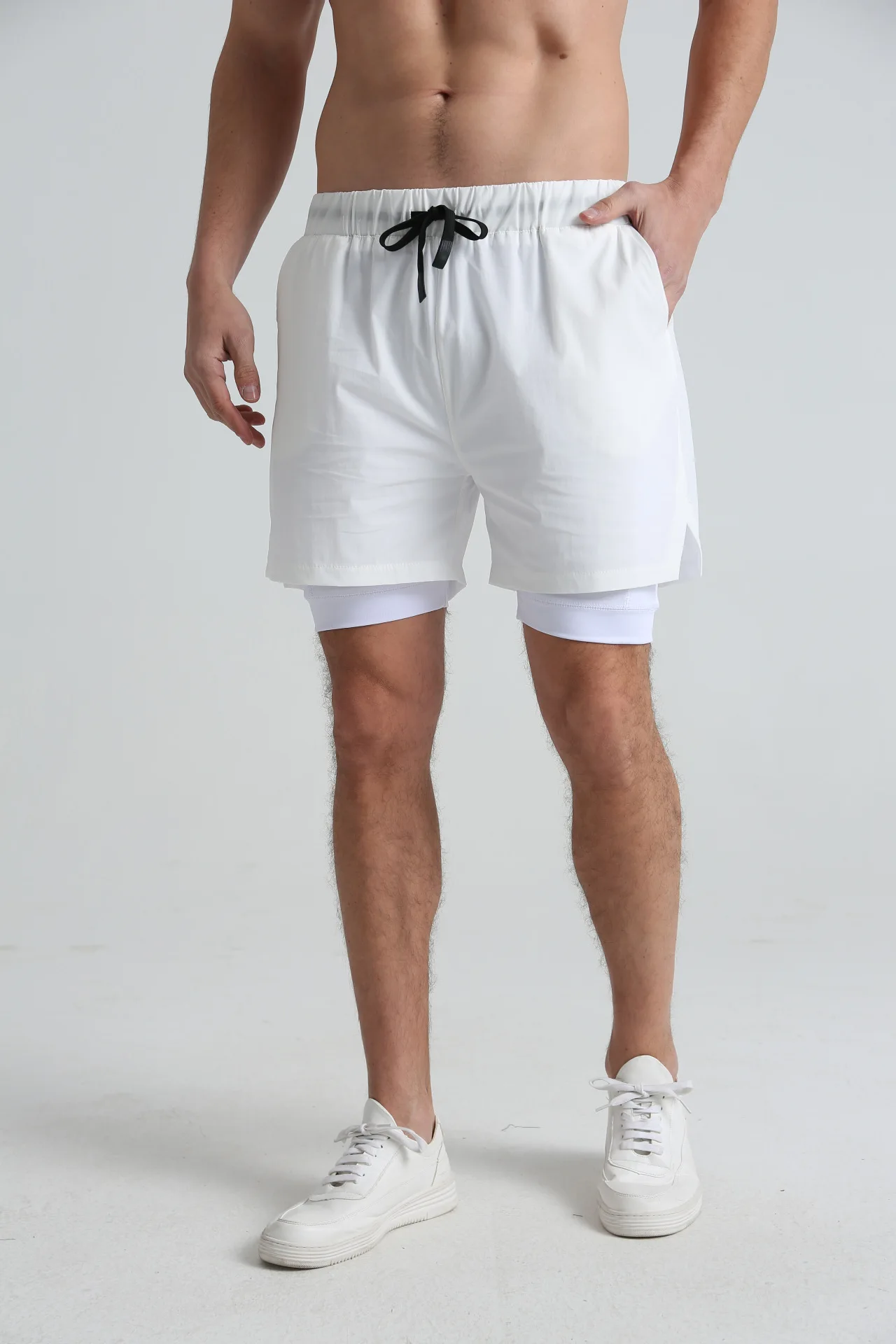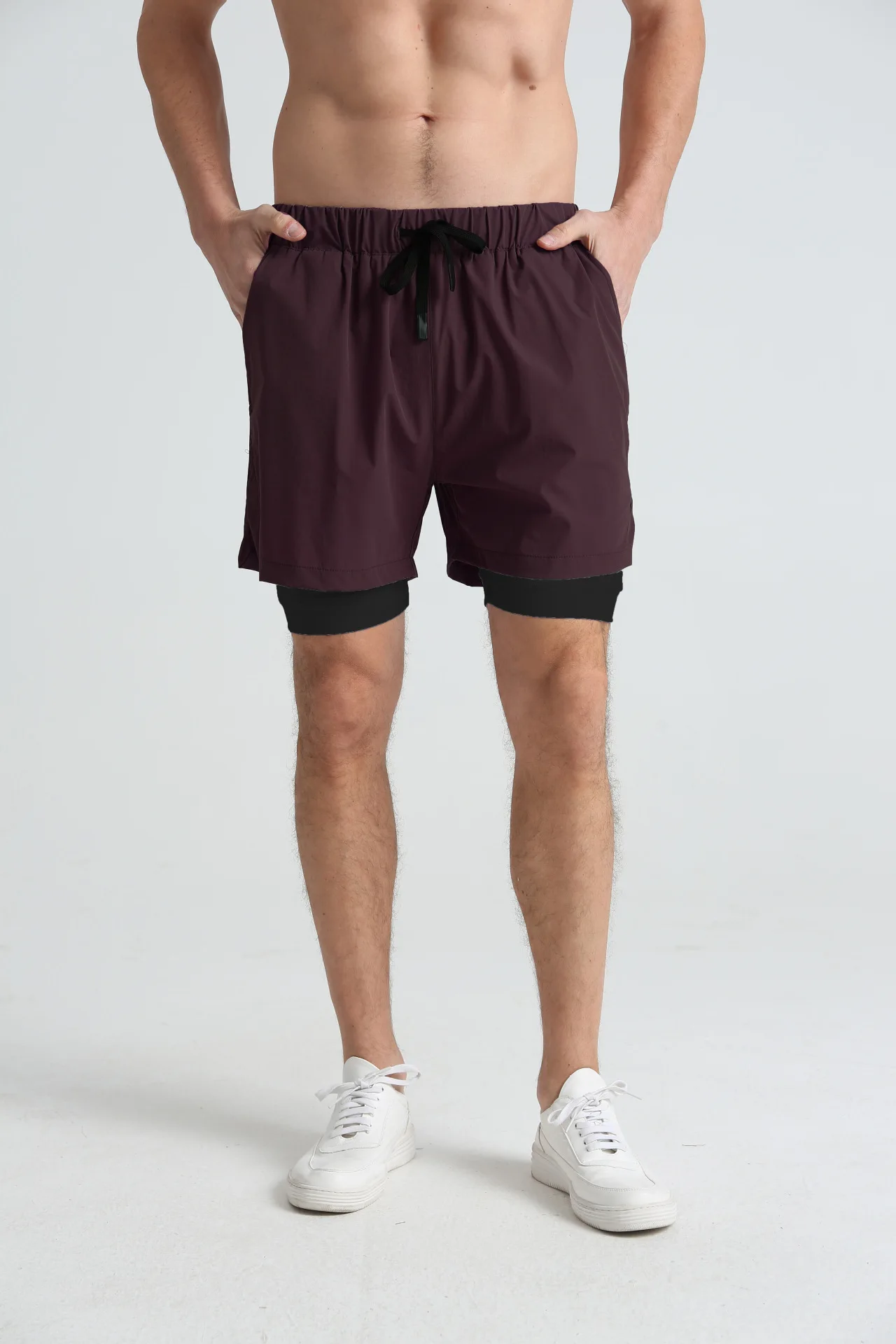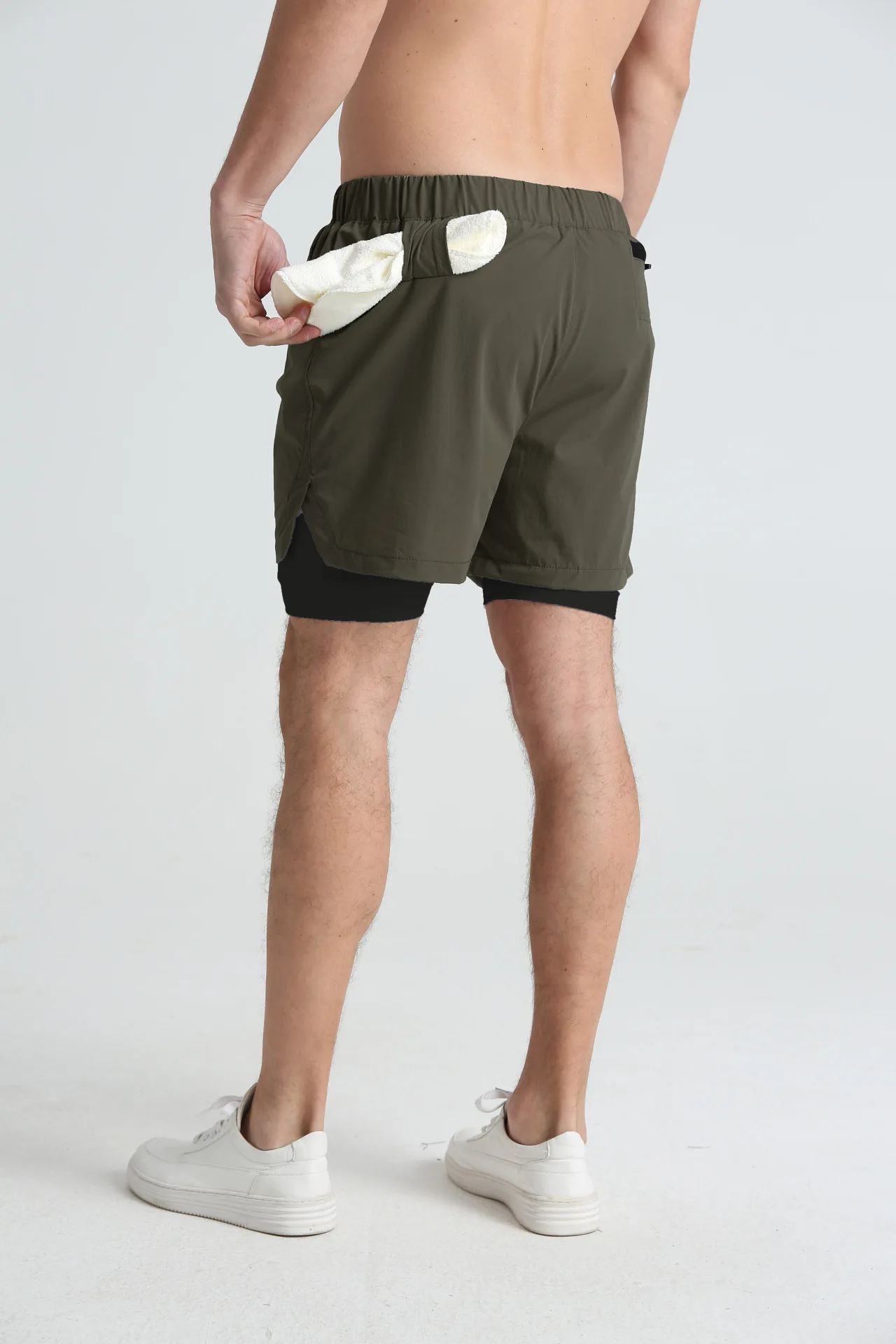 Men's sports double-deck shorts Fitness Quick Dry Training Shorts Casual 2 In 1 Multi-pocket sweatpants Men Gyms Running shorts