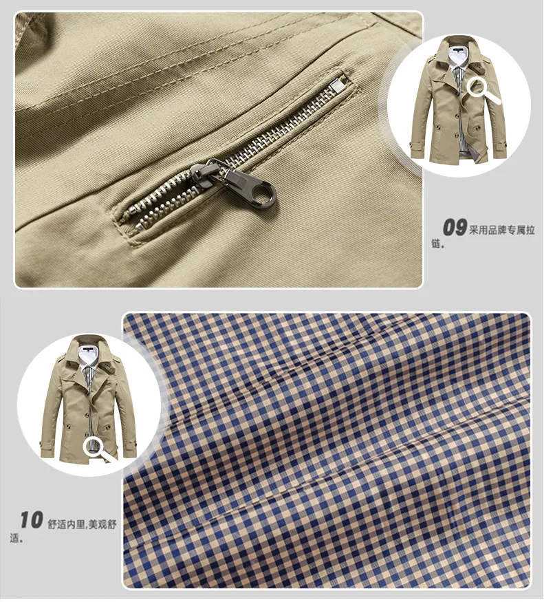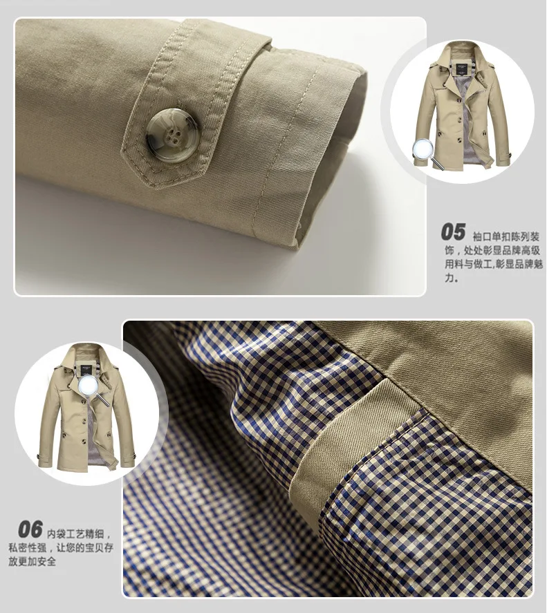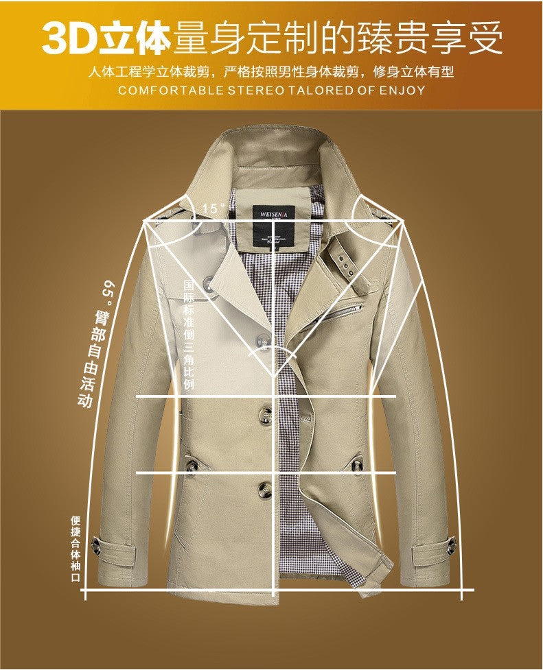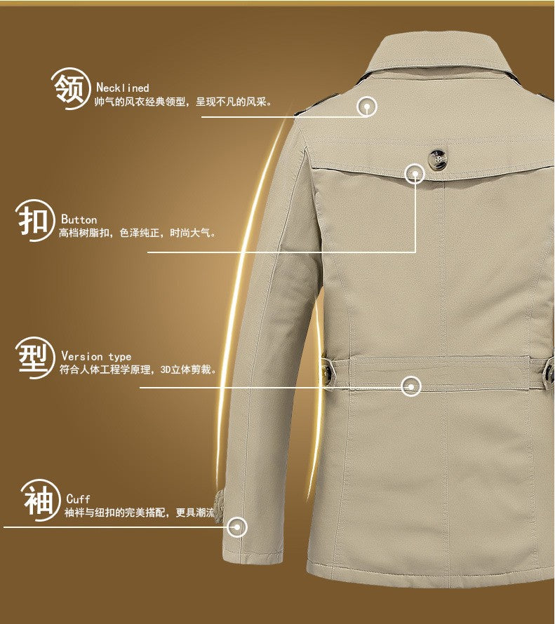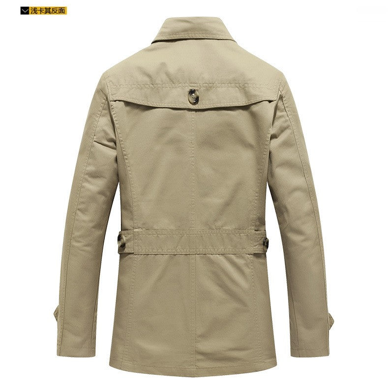 Men's Spring and Autumn New Fashion Casual Cotton Trench Coat, Solid Color Lapel Single-breasted Mid-long Splicing Trench Coat