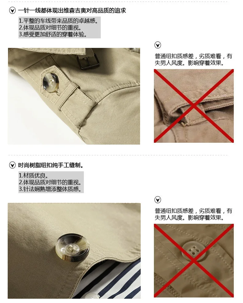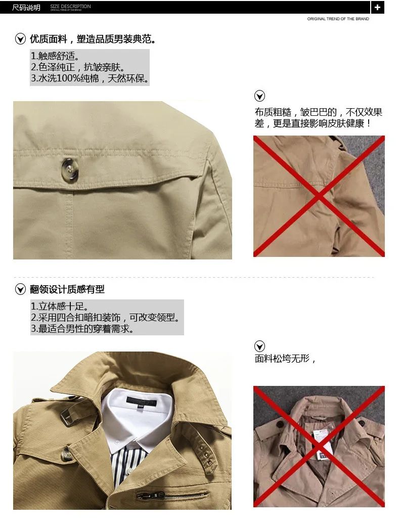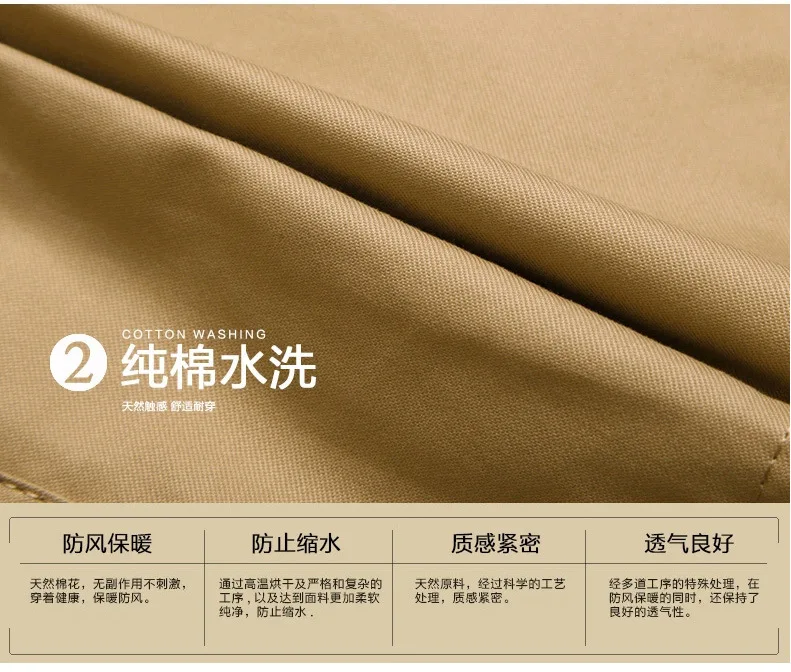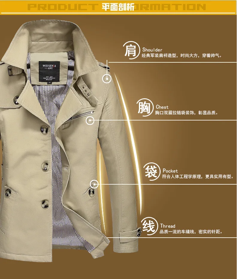 Men's Spring and Autumn New Fashion Casual Cotton Trench Coat, Solid Color Lapel Single-breasted Mid-long Splicing Trench Coat