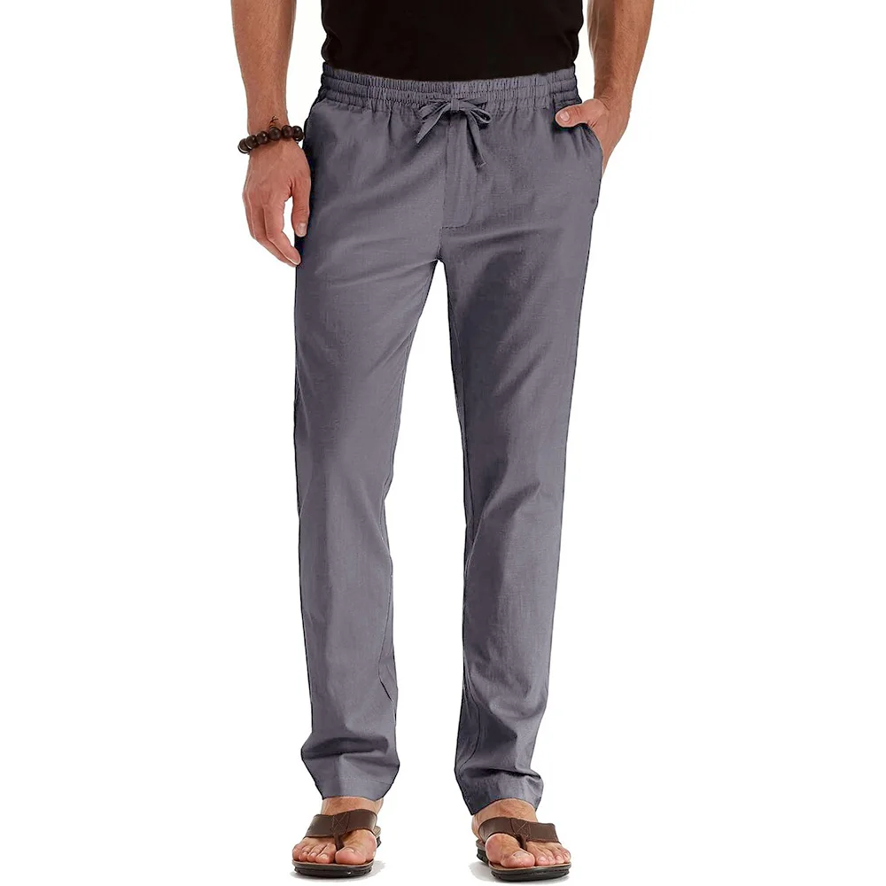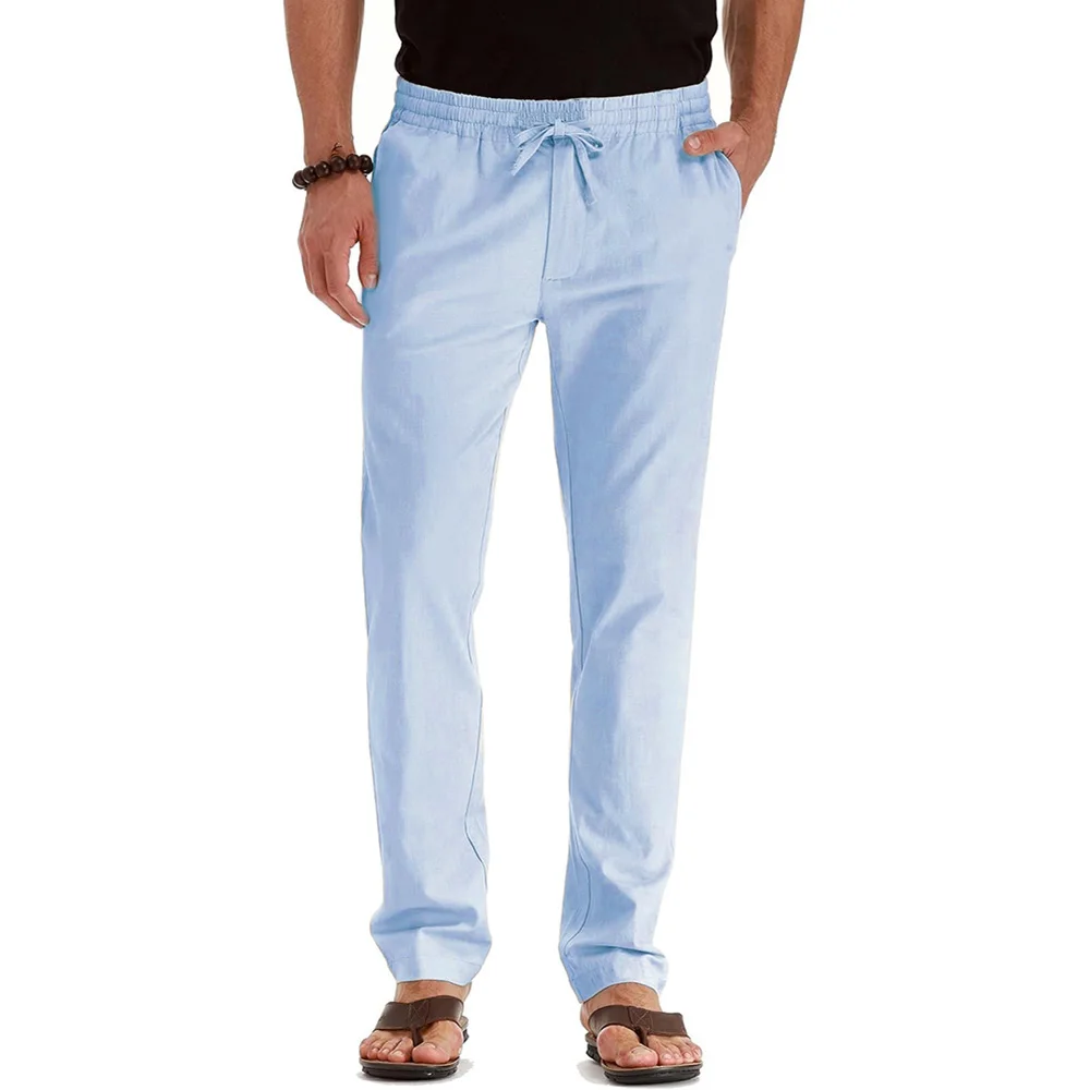 Men's Spring Summer New Cotton Linen Long Pants Vacation Hawaii Casual Trouser Straight Leg Lightweight Sweatpants