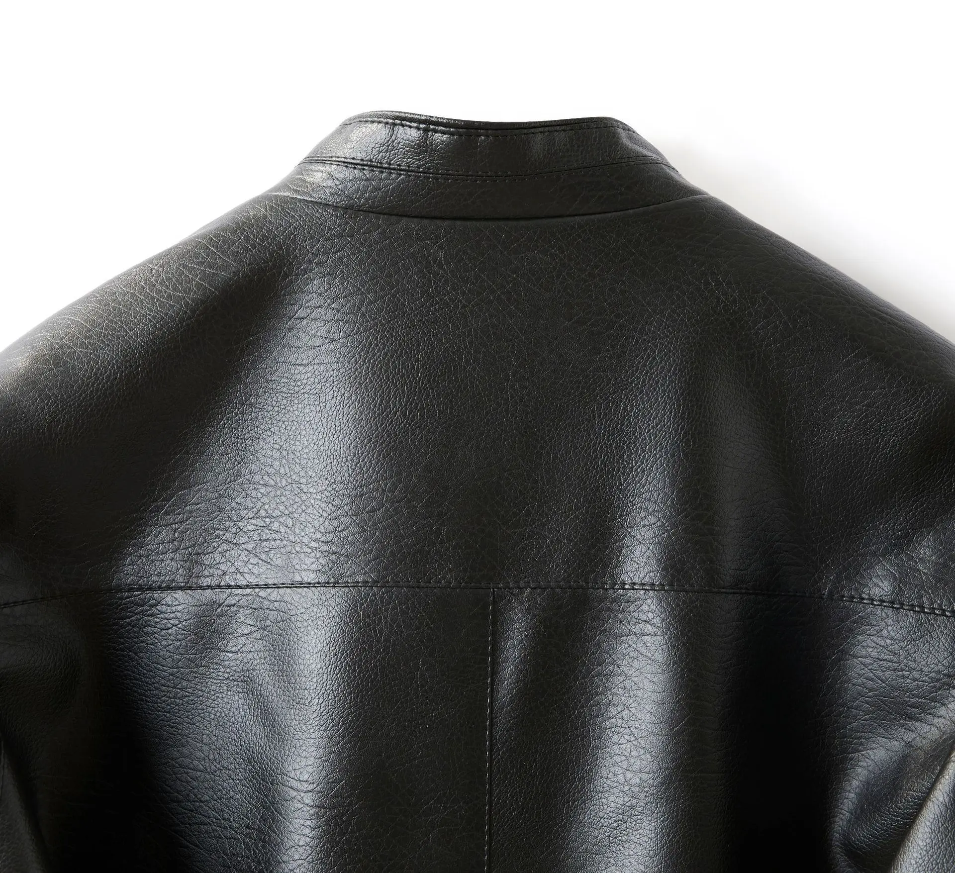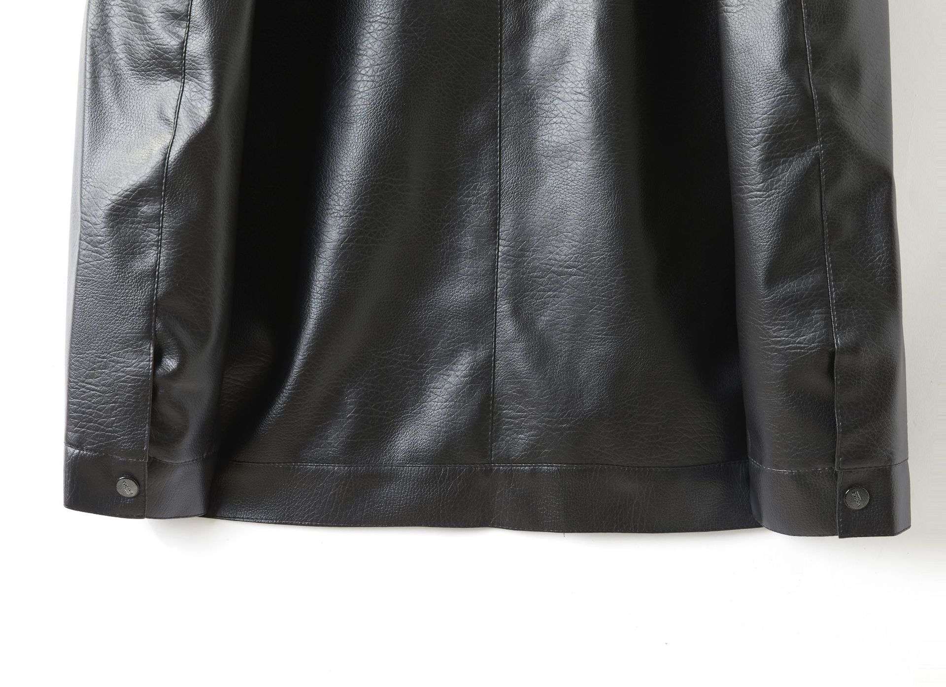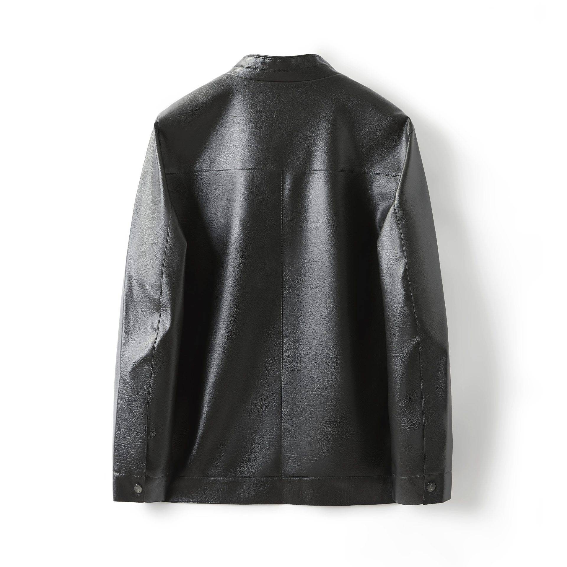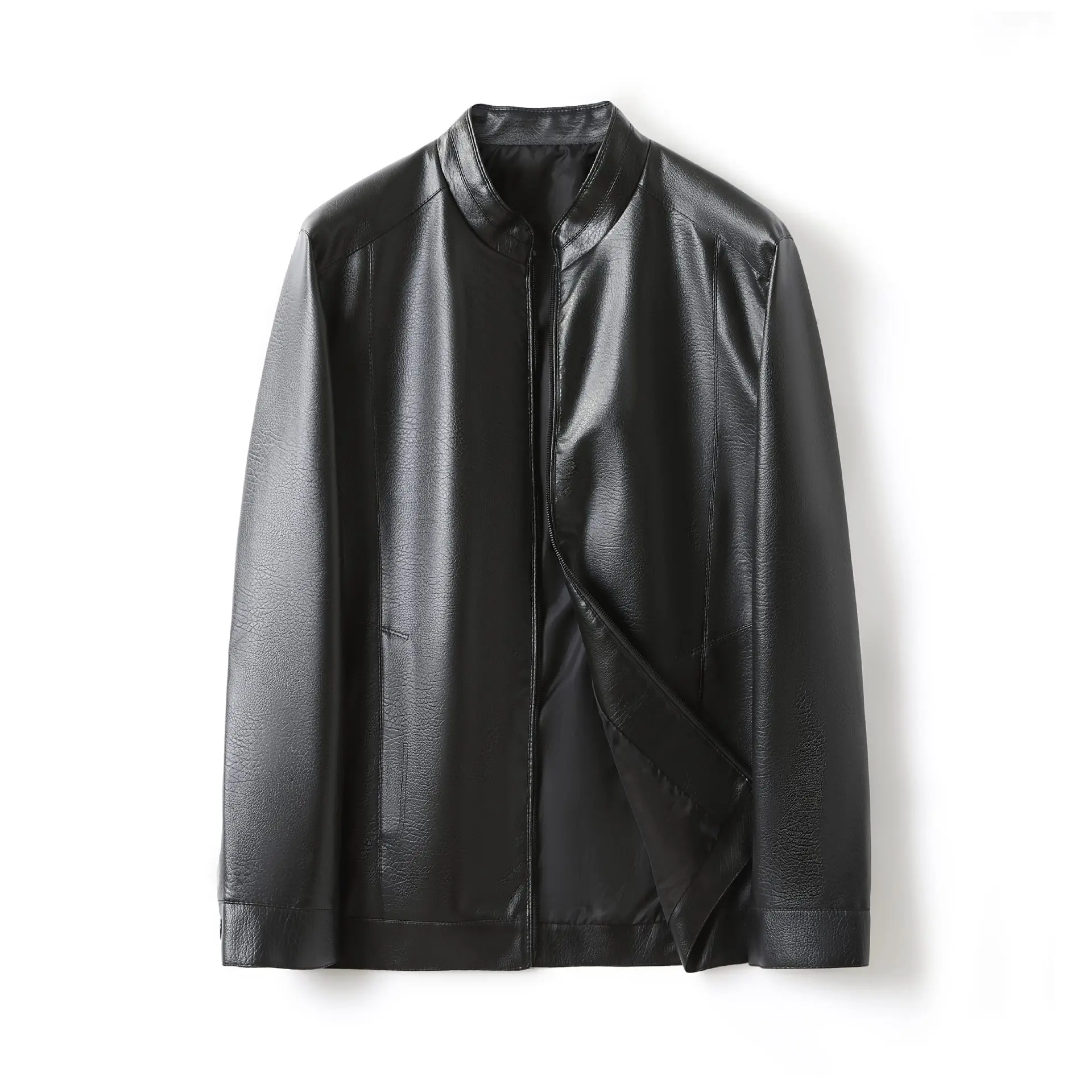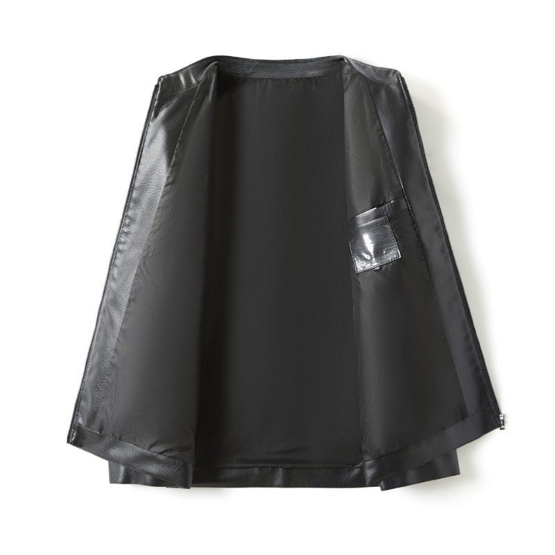 Men's Stand Collar Slim Fit Autumn Winter New Haining Leather Jacket Men's Middle-aged Plus Velvet Thickening