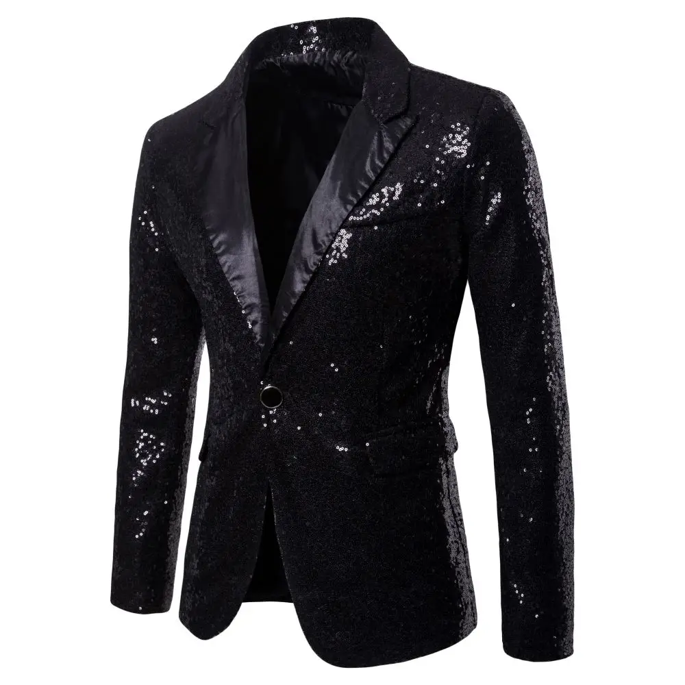 Men's Suit Round Sequin Pocket Single Row Button Wedding Groom Stage Show Hosting Dinner Menswear Bar Dance Casual Men Blazer