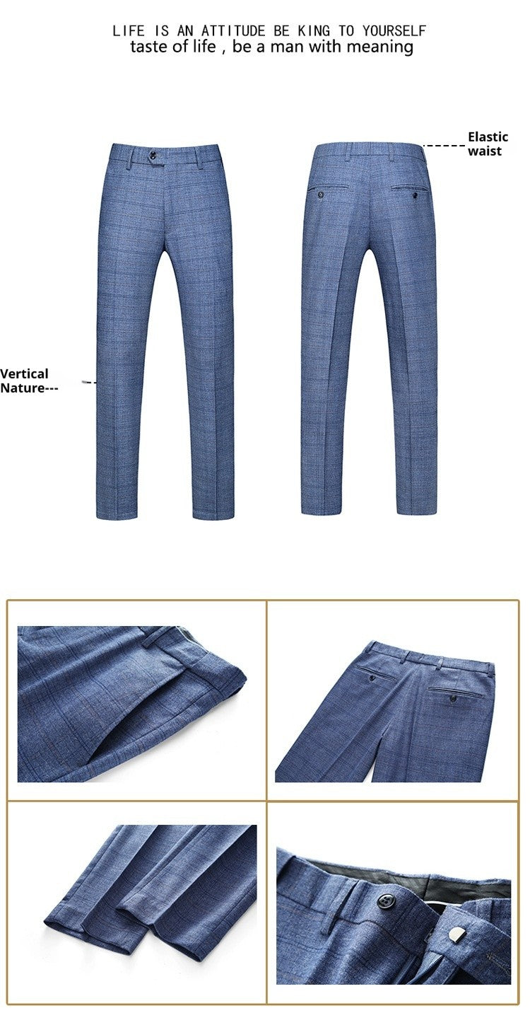 Mens Suits 3 Piece Business Office Formal Set Checkered Pattern Slim Fit Blazer Vest Pants High Quality Luxury Work Wedding