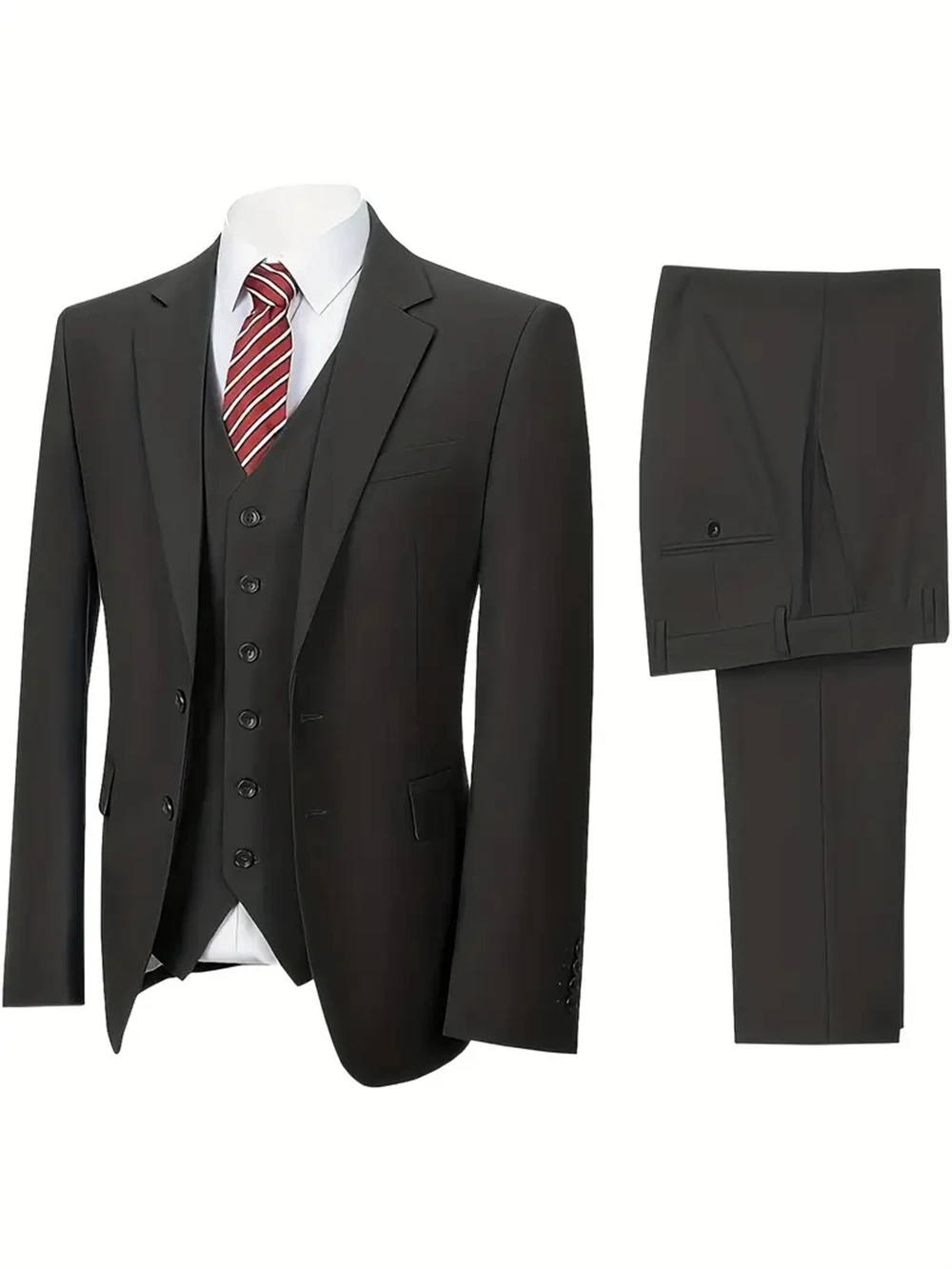 Men's Suits 3pcs Mens Business Suit Notch Lapel Blazer Formal Wedding Groom Pants Tux Vest Tuxedos (Blazer+vest+Pants)