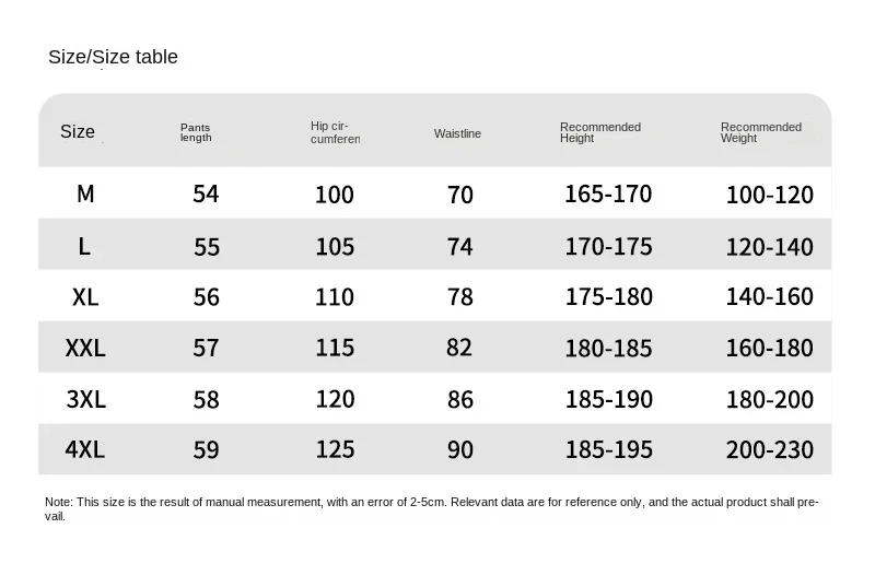 1. Because every person's body shape is different, the recommended height and weight can only be used as a reference.