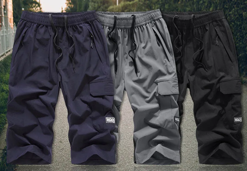 Men's Summer Quick Dry 3/4 Pants Lightweight Capri Shorts Hiking Fishing Travel Casual Cargo Shorts Pants Men Gym Shorts 7XL 8XL