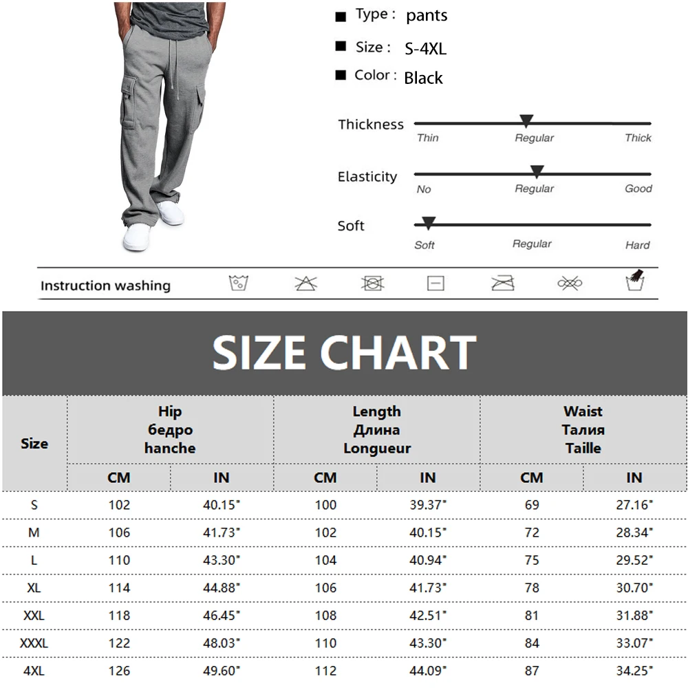 Mens Sweatpants Straight Fit Joggers for Sports and Streetwear Loose Oversized Drawstring Long Pants Men Multi-pocket Pants