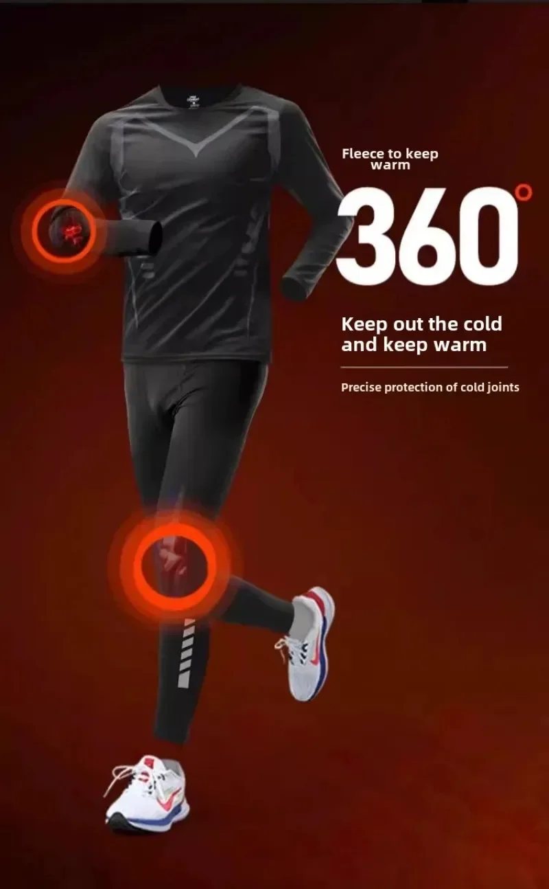 Men's Thermal Plush Base Layer Set Winter Thickened Running Trainning Quick Drying Clothes Fitness Tight Sports Men's Sweats Set