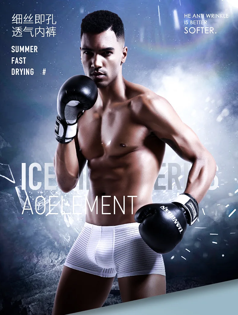 Mens Total Support Pouch Boxer Briefs Mesh Comfortable Cooling Moisture Wicking Underwear Breathable Elastic waistband Underpant
