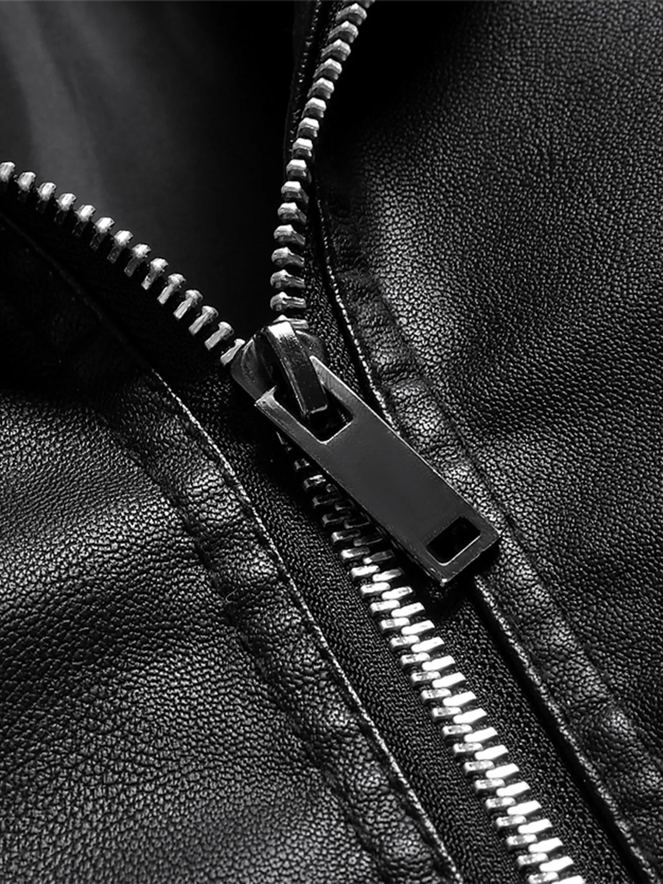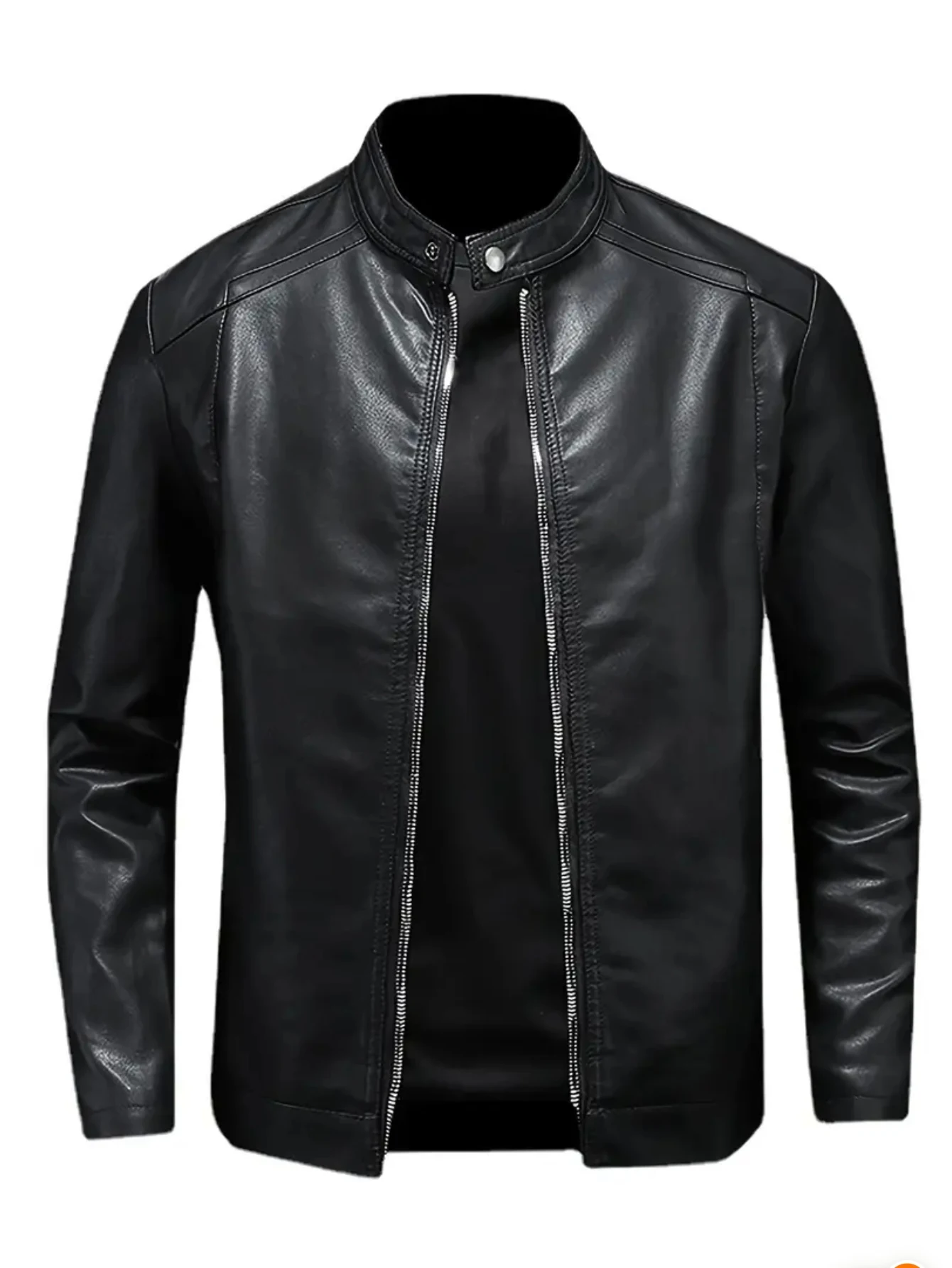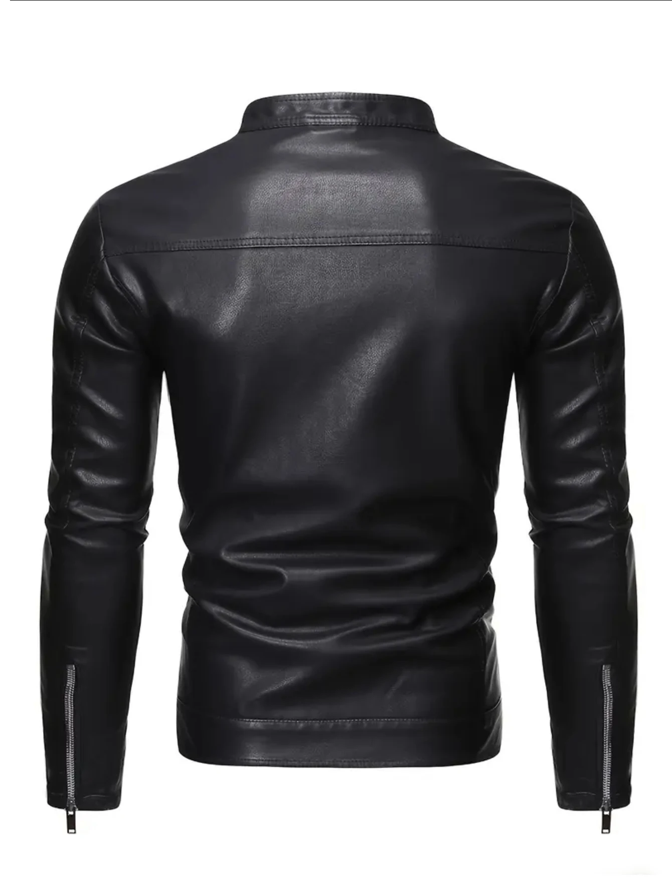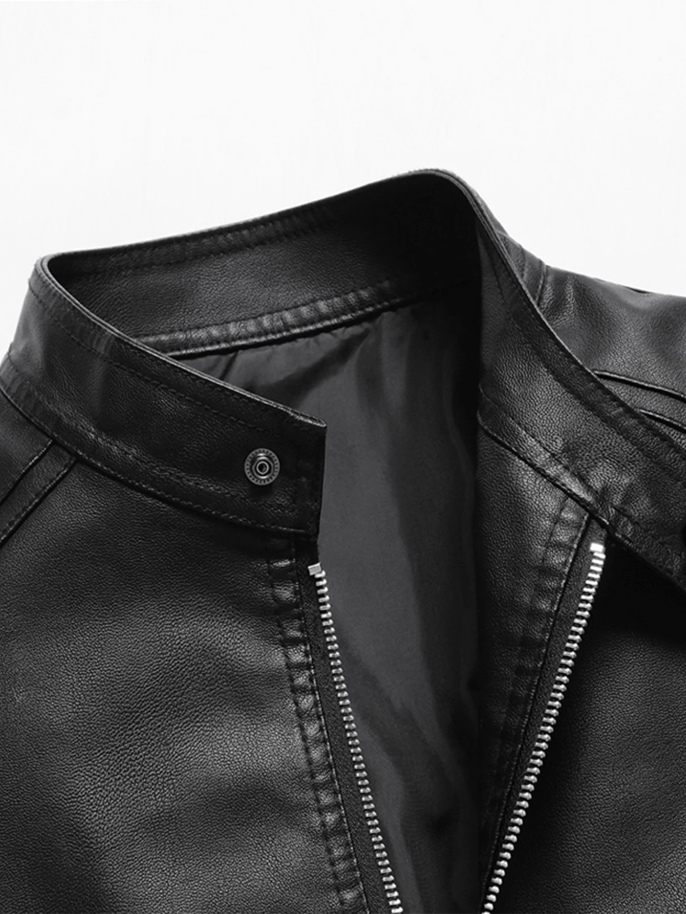 Men'S Vintage Motorcycle Jacket - Full-Zip Closure, Stand Collar, Non-Stretch Synthetic Biker Coat for Spring/Fall Riding, Casua