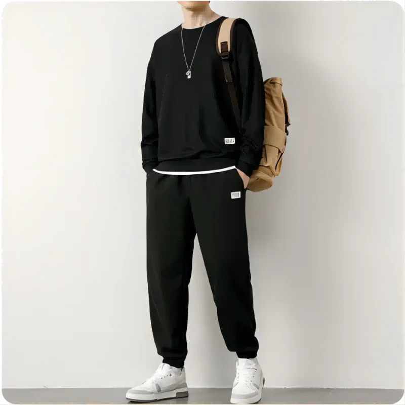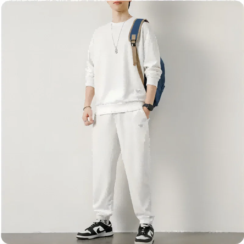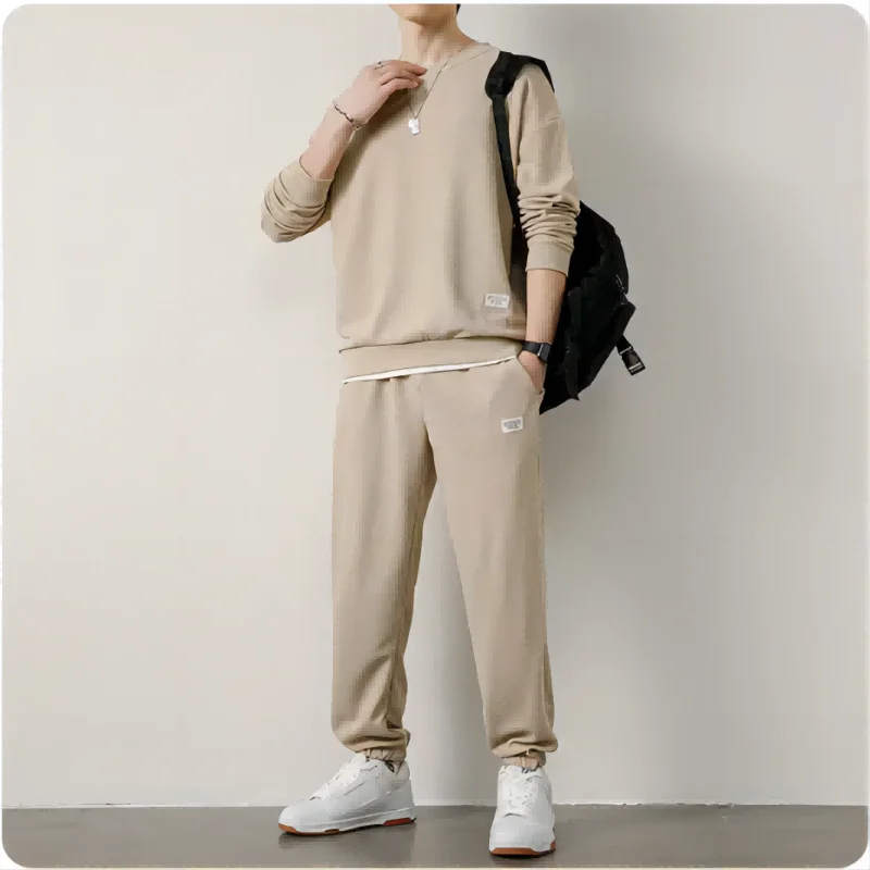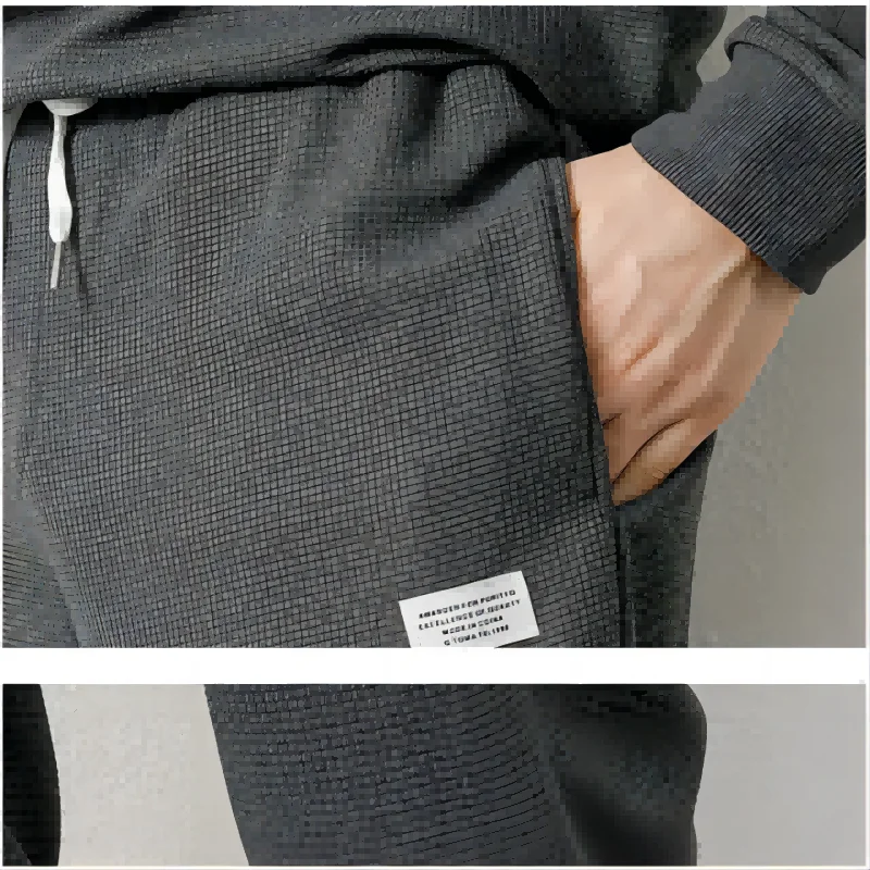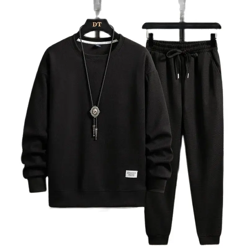 Men's Waffle Suit Sets Casual Long Sleeved Sweatshirt and Pants for Sports Men's T-shirt Hoodie Casual Trousers Set Loose Fit