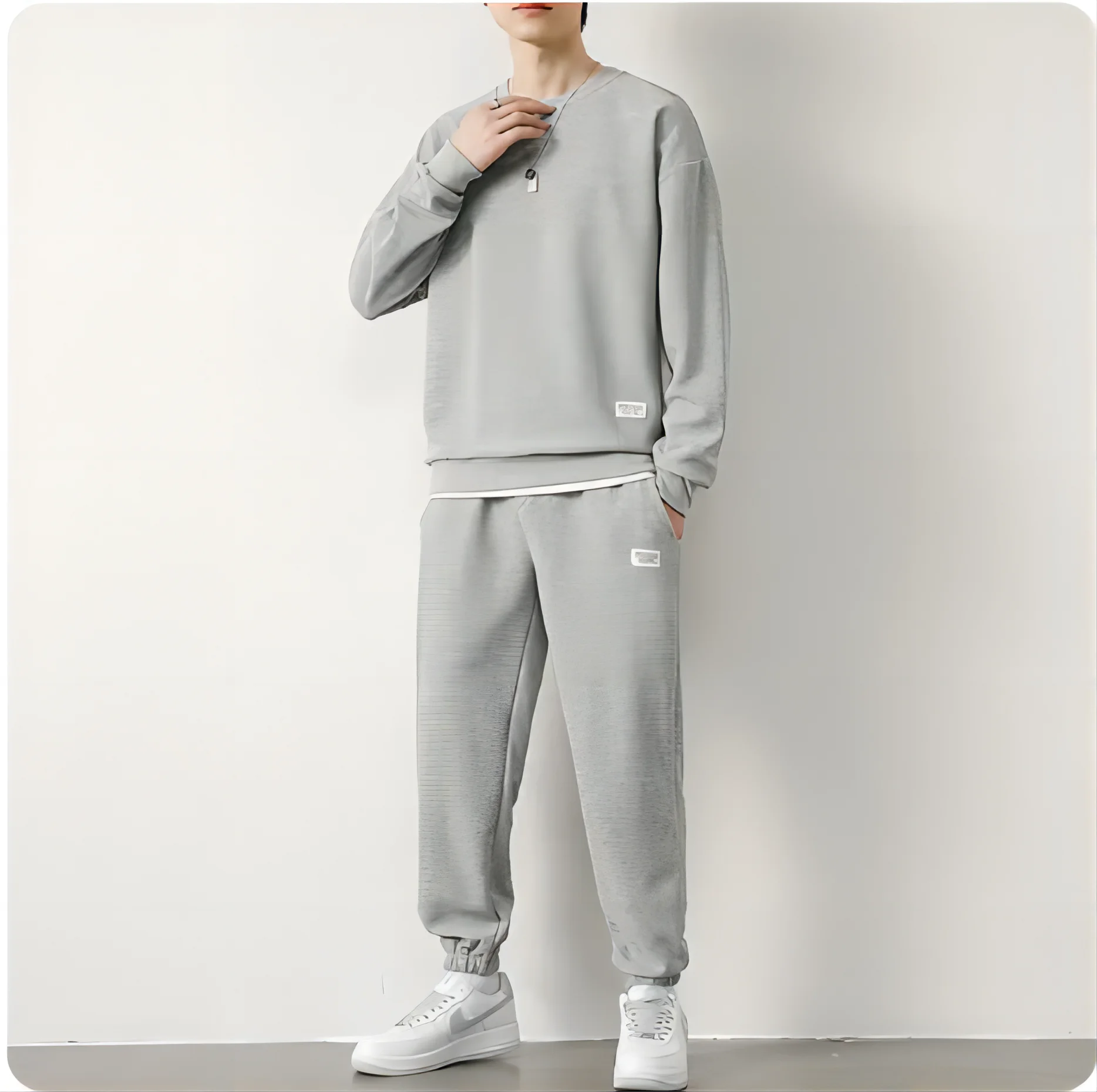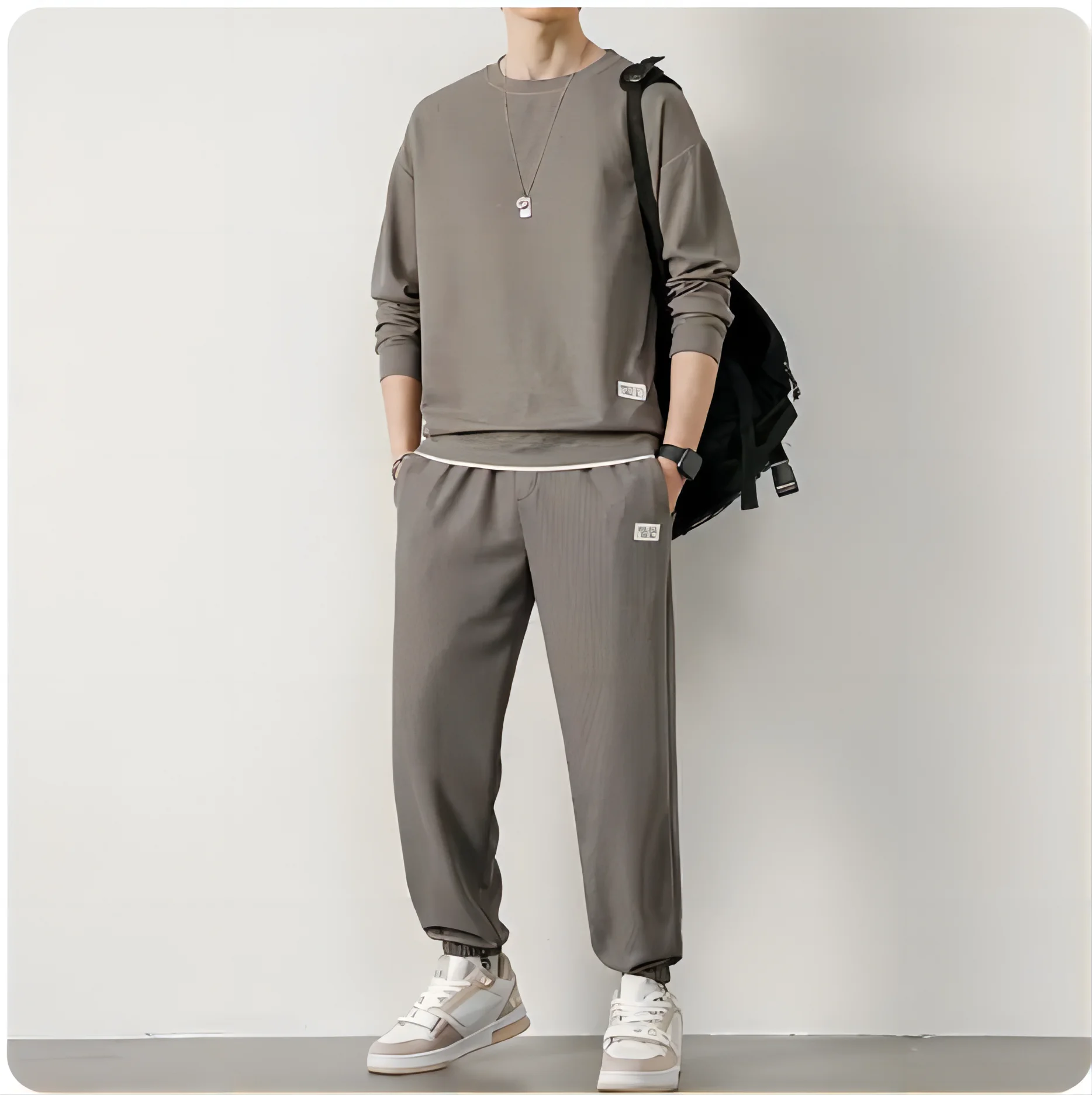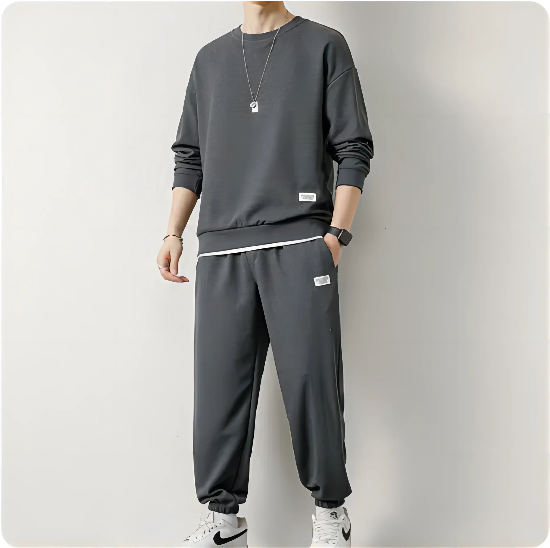 Men's Waffle Suit Sets Casual Long Sleeved Sweatshirt and Pants for Sports Men's T-shirt Hoodie Casual Trousers Set Loose Fit