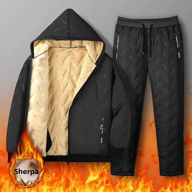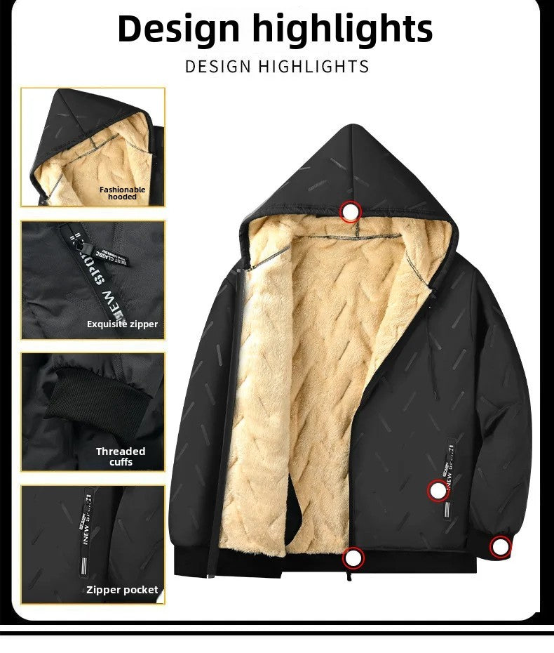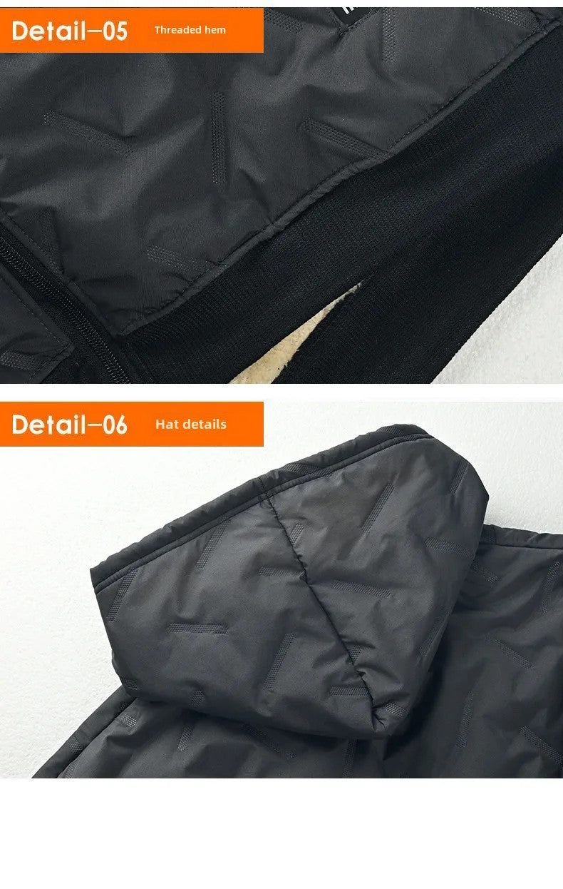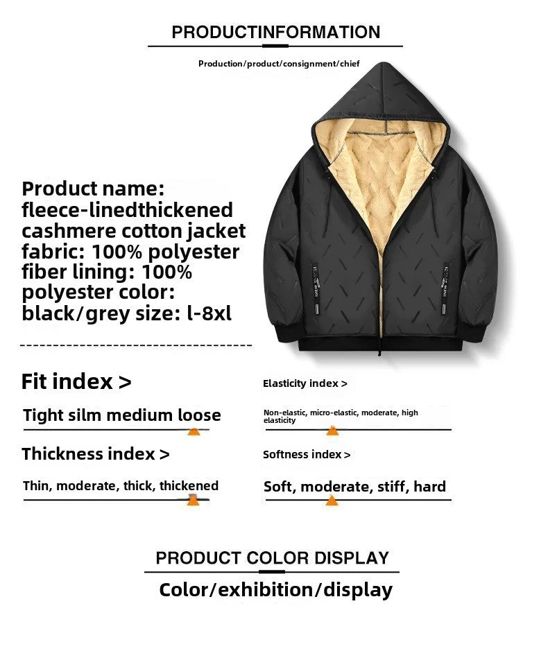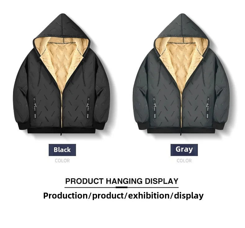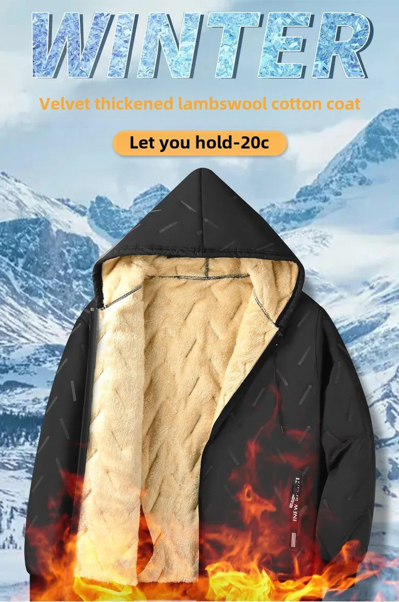 Men's Winter Lamb Velvet Jacket Fleece Lined Cotton Suit Hooded Loose plus Size Warm Cotton Coat Thermal Cotton Clothing
