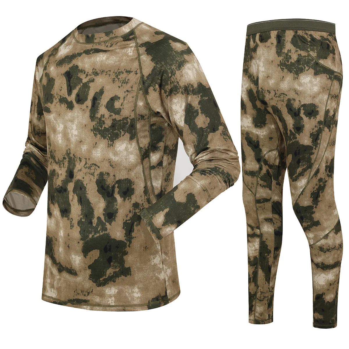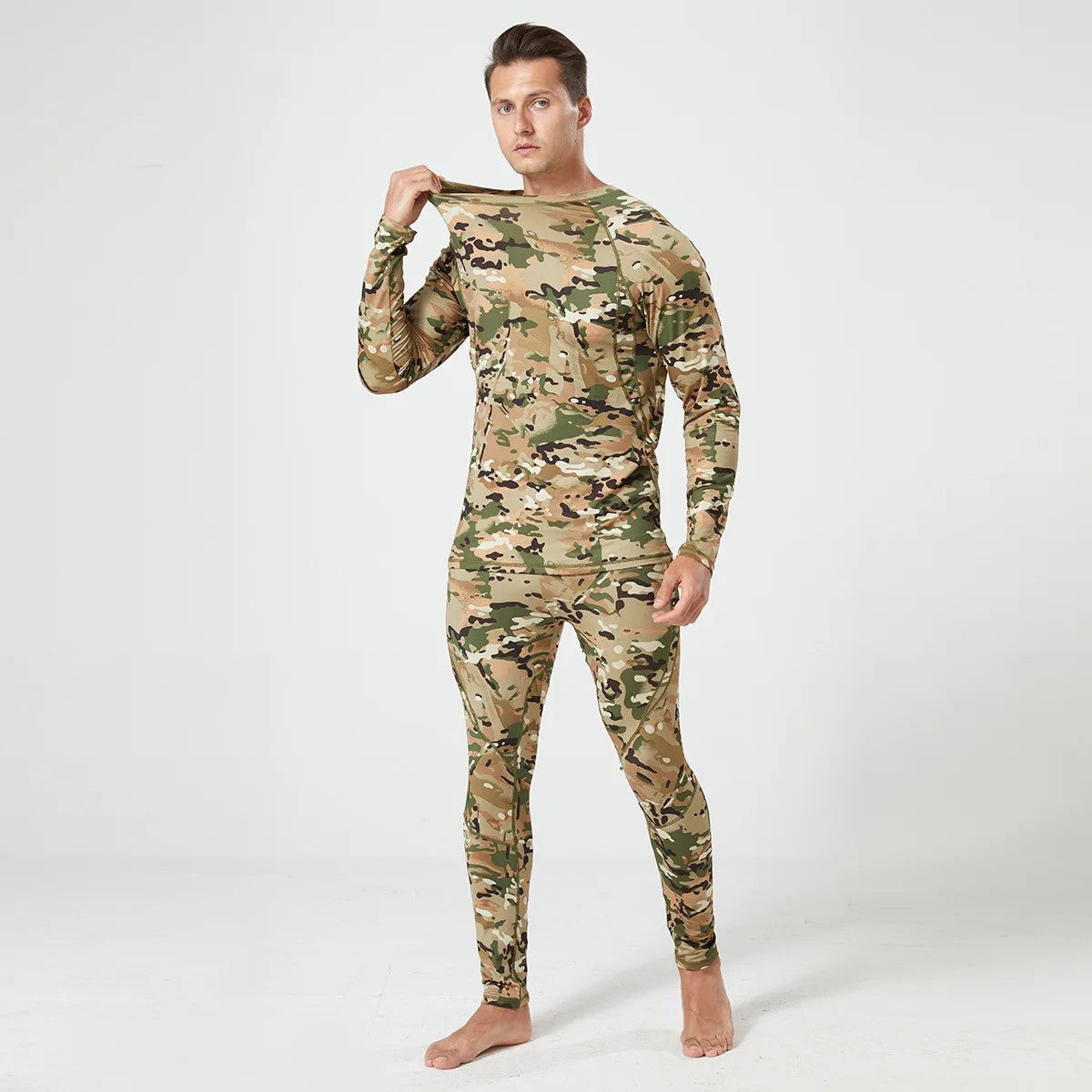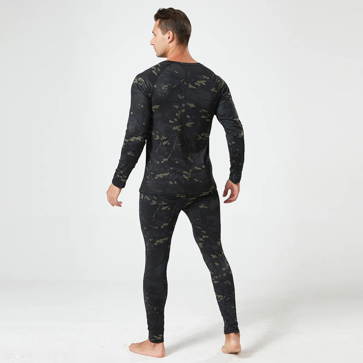 Men's Winter Thermal Fleece Tracksuit for Outdoor Training Quick Dry Camouflage Tactical Uniforms Slim Fit Running Underwear Set
