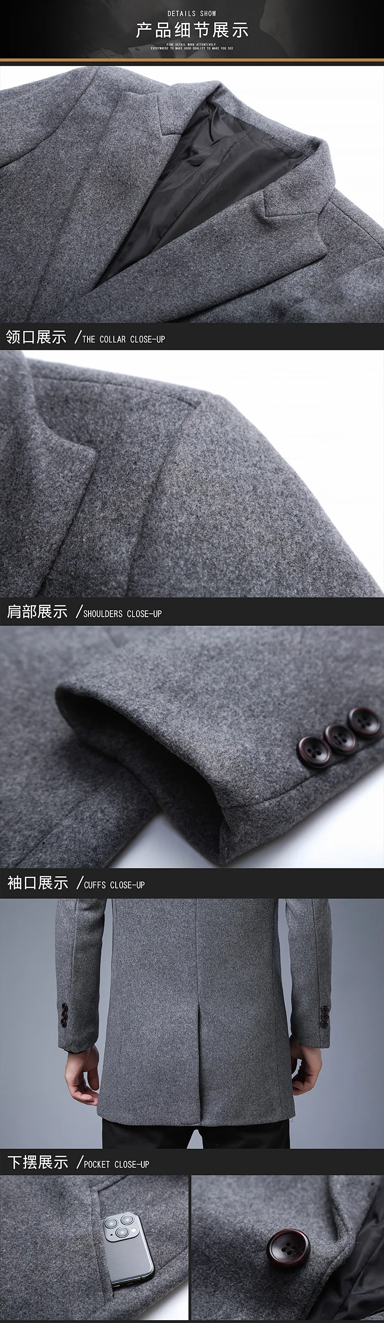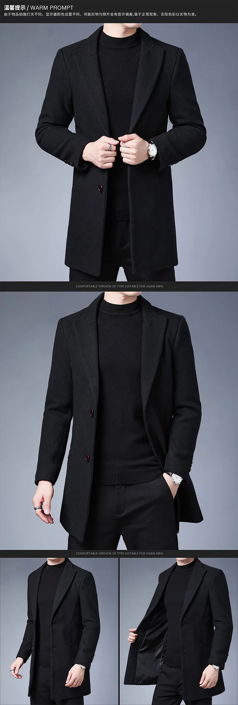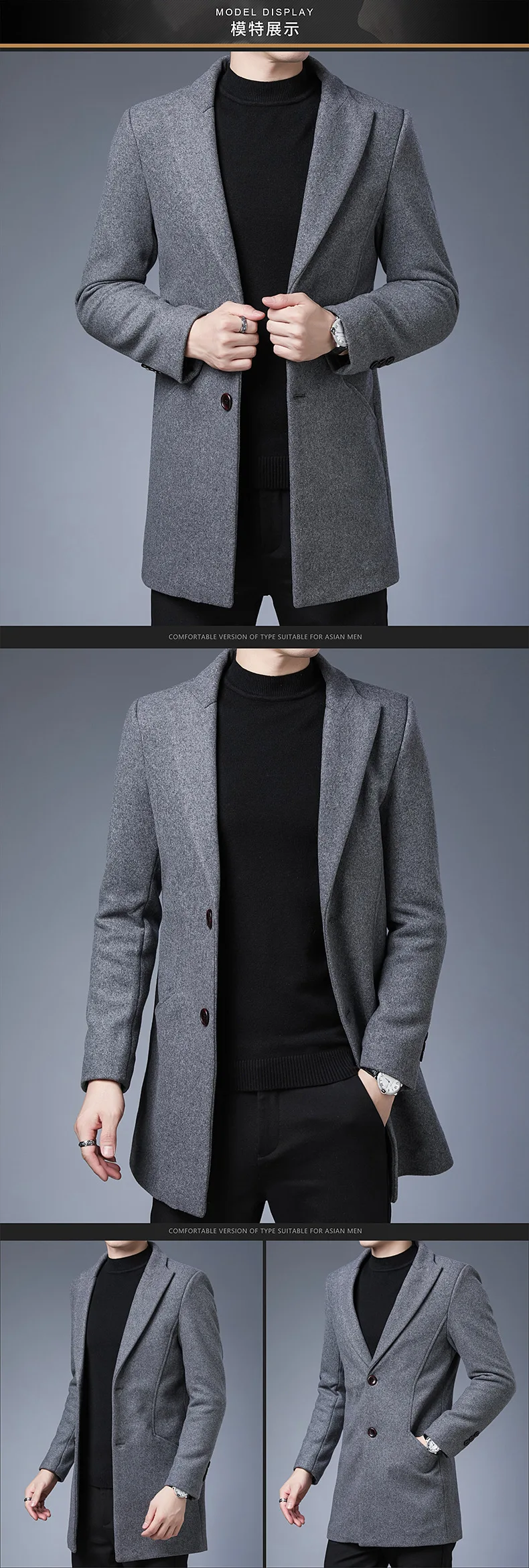 Men's Wool Blend Overcoat - Mid-Length Business Trench Coat with Notch Lapel (Tailored Contemporary Fit)