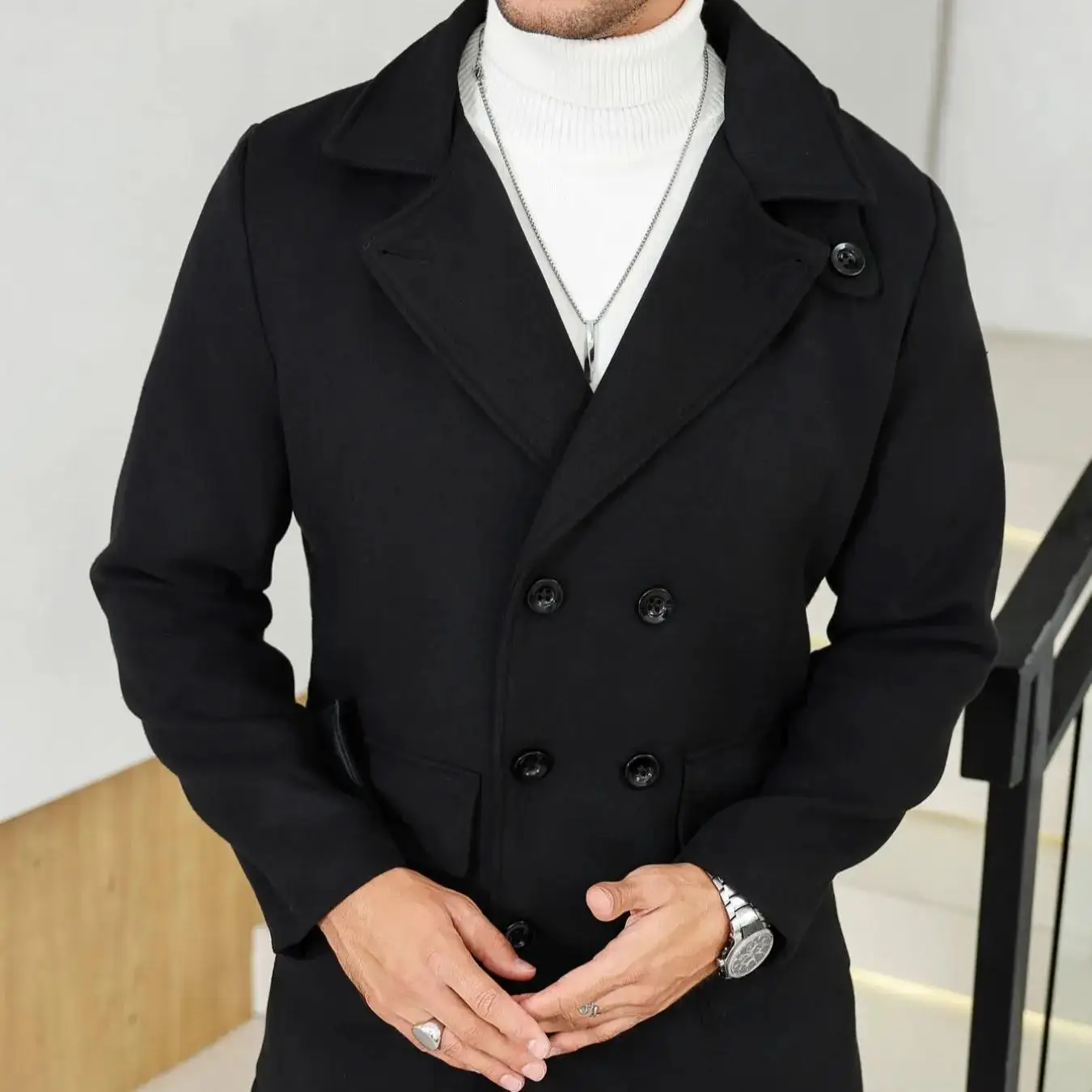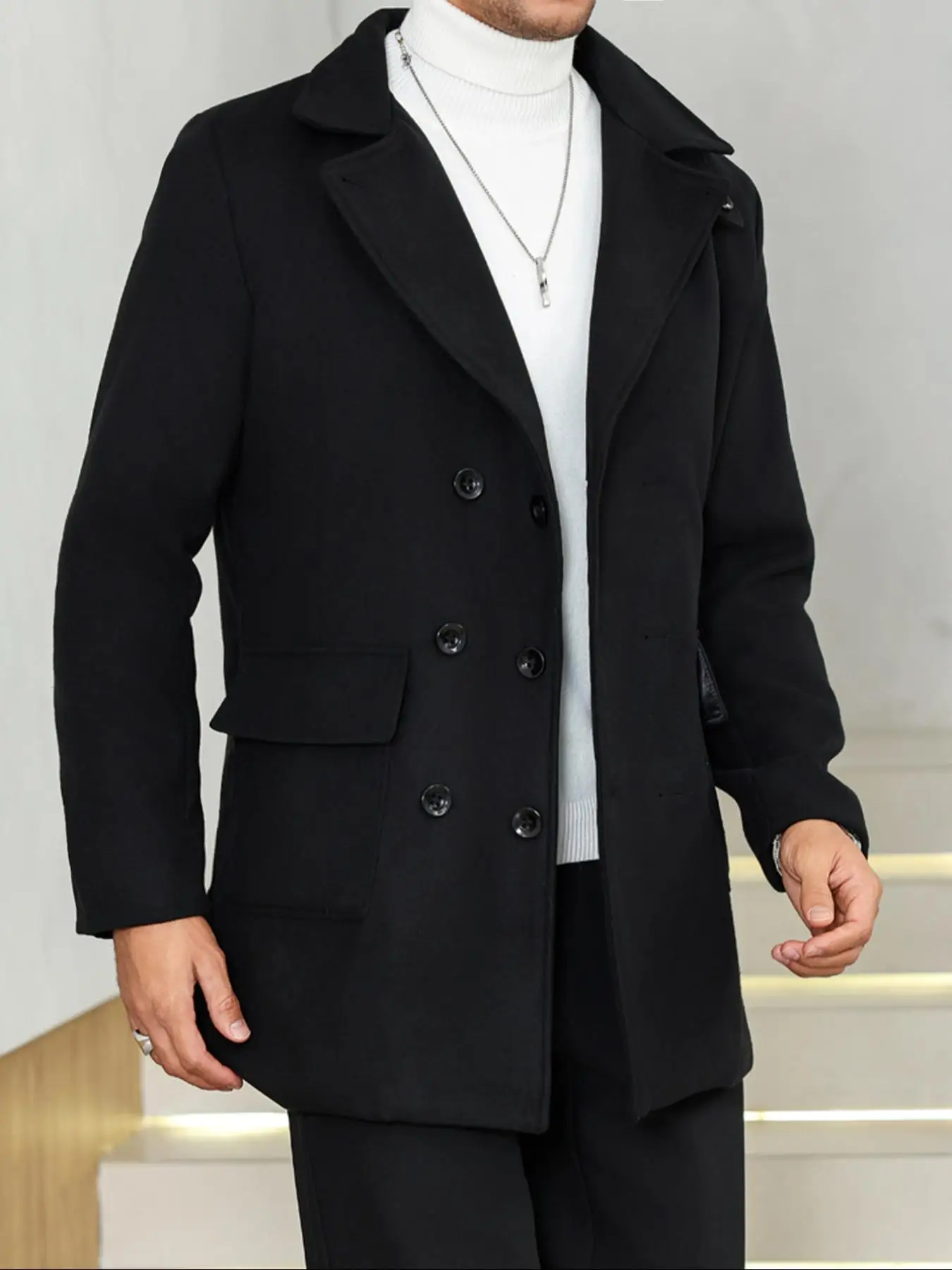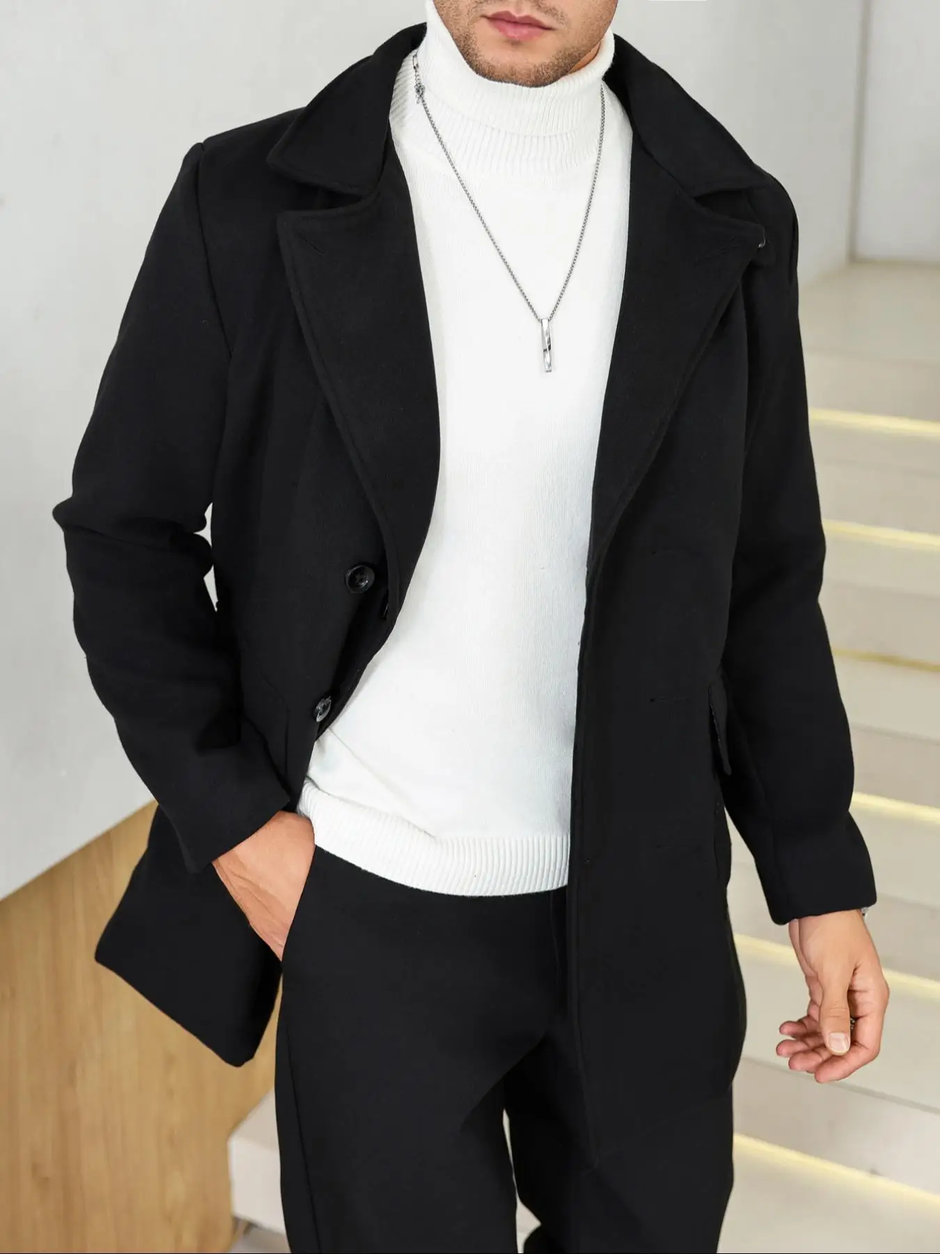 Men's Woolen Overcoat, Casual Fashion Long Sleeve Jacket with Pockets, Fall & Winter Outerwear for Daily Wear & Business