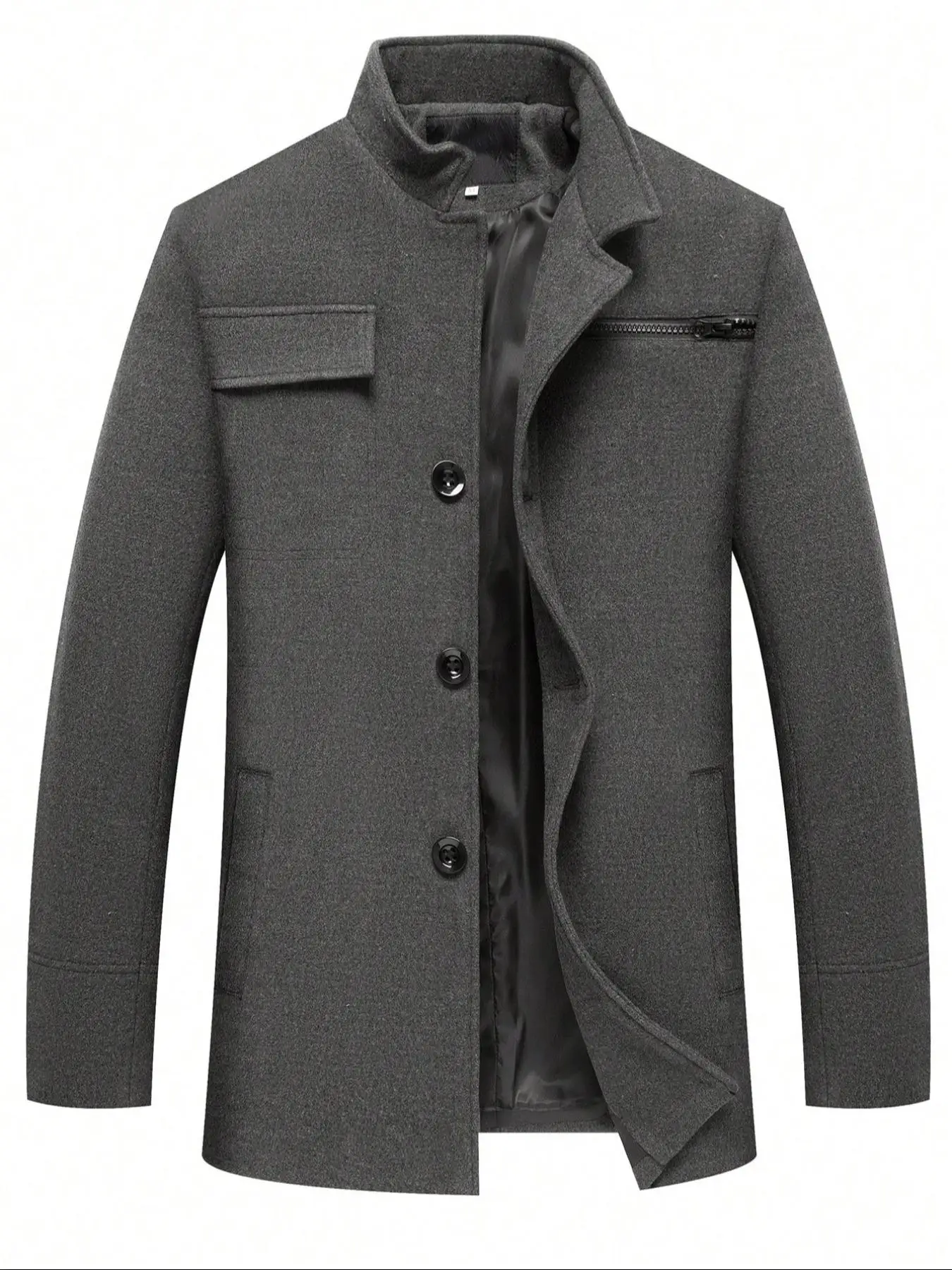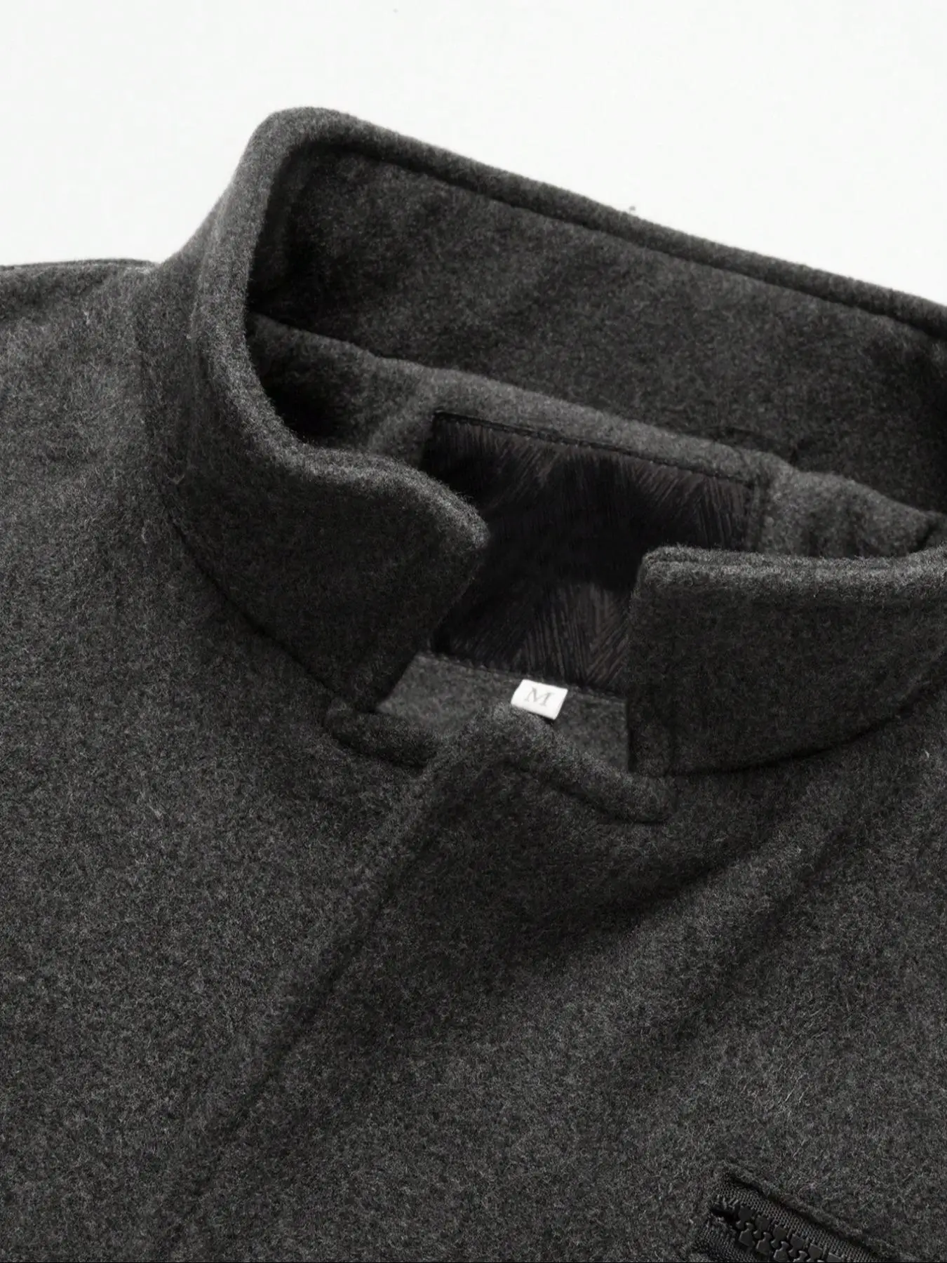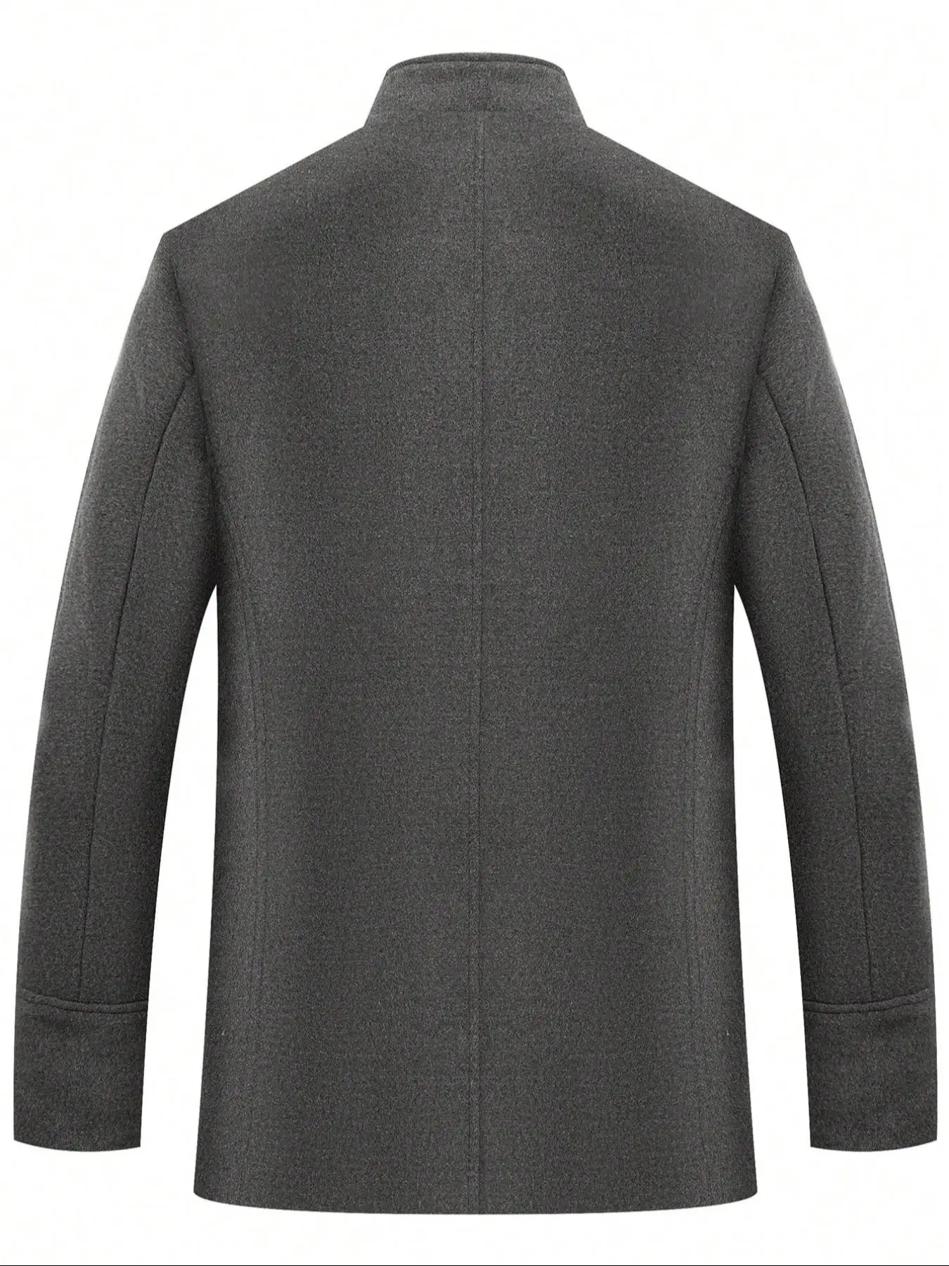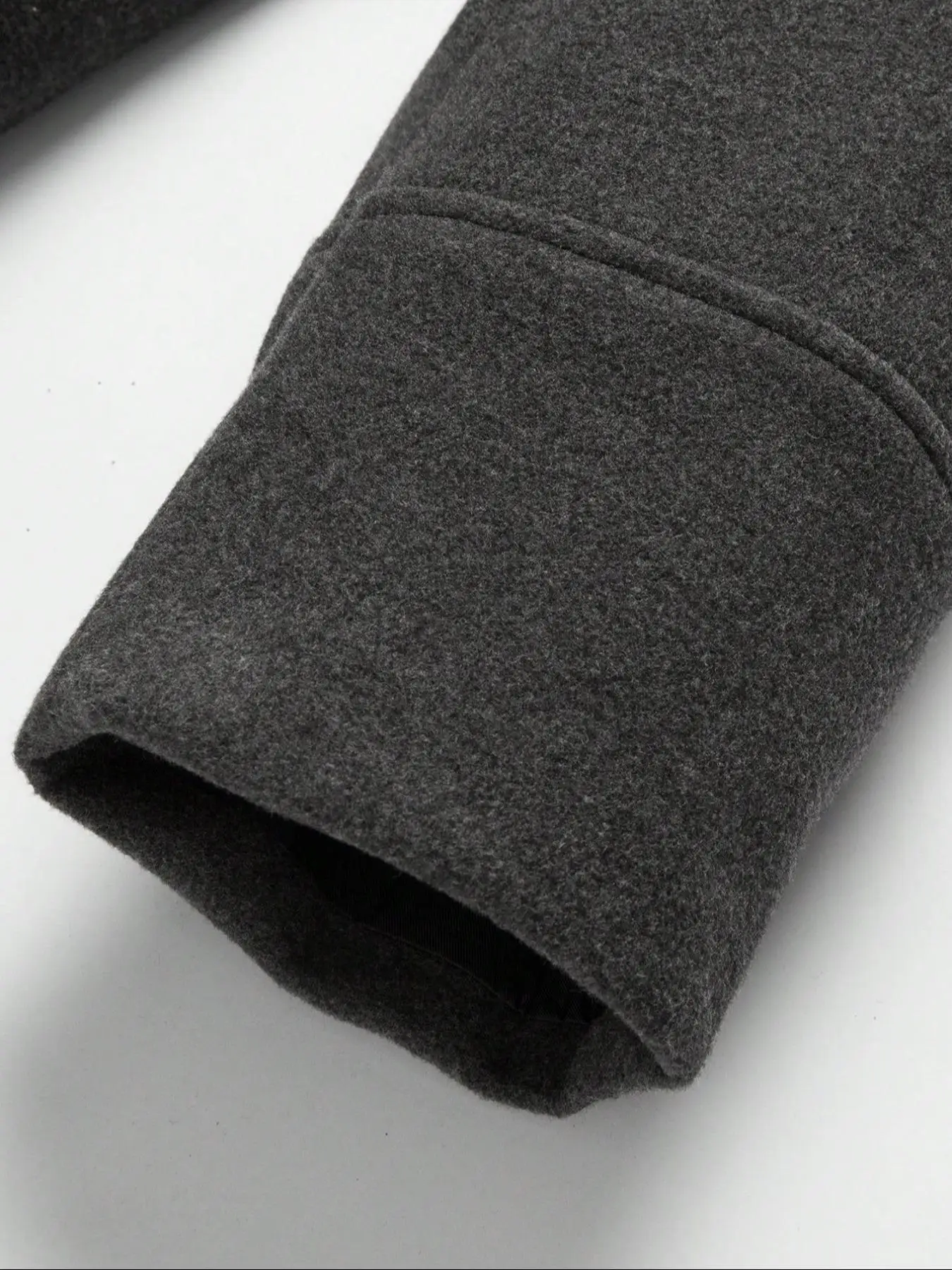Men's Woolen Overcoat Long Sleeve Solid Casual Jacket with Pockets, Comfortable Daily Wear, Business & Sports Fashion