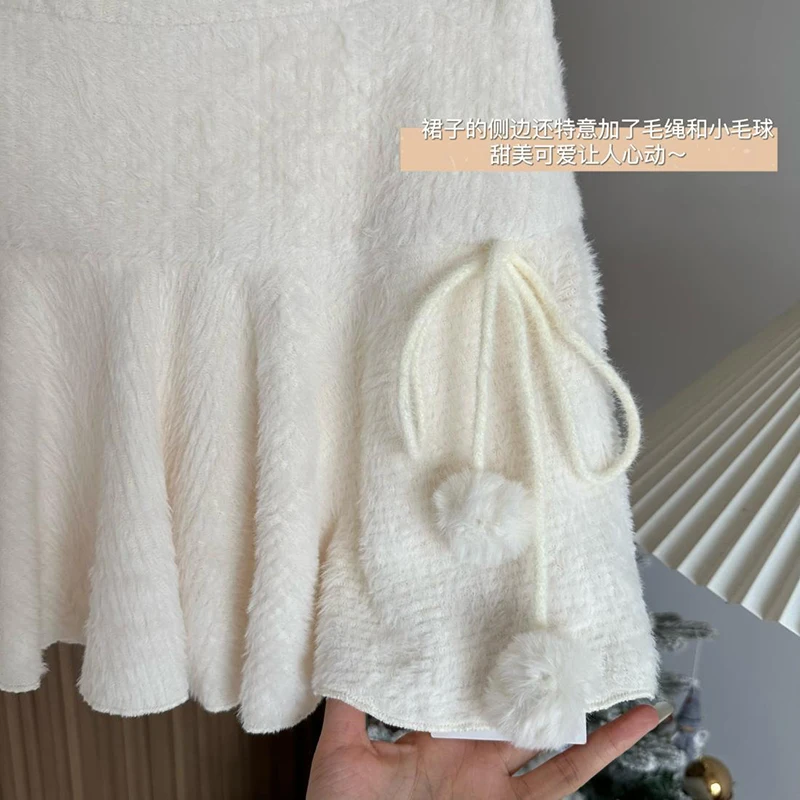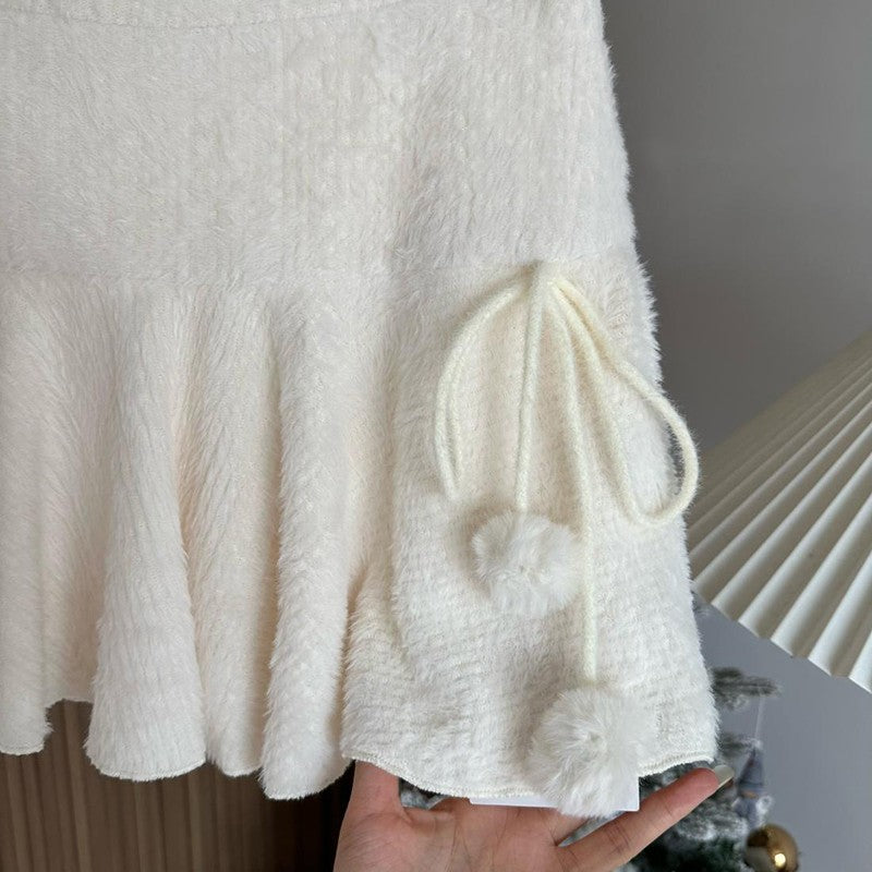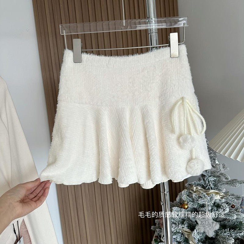 MEXZT Kawaii White Mini Skirts Women Preppy Cute High Waist Skirt Winter Japanese Streetwear Lace Up Chic Slim A Line Faldas New