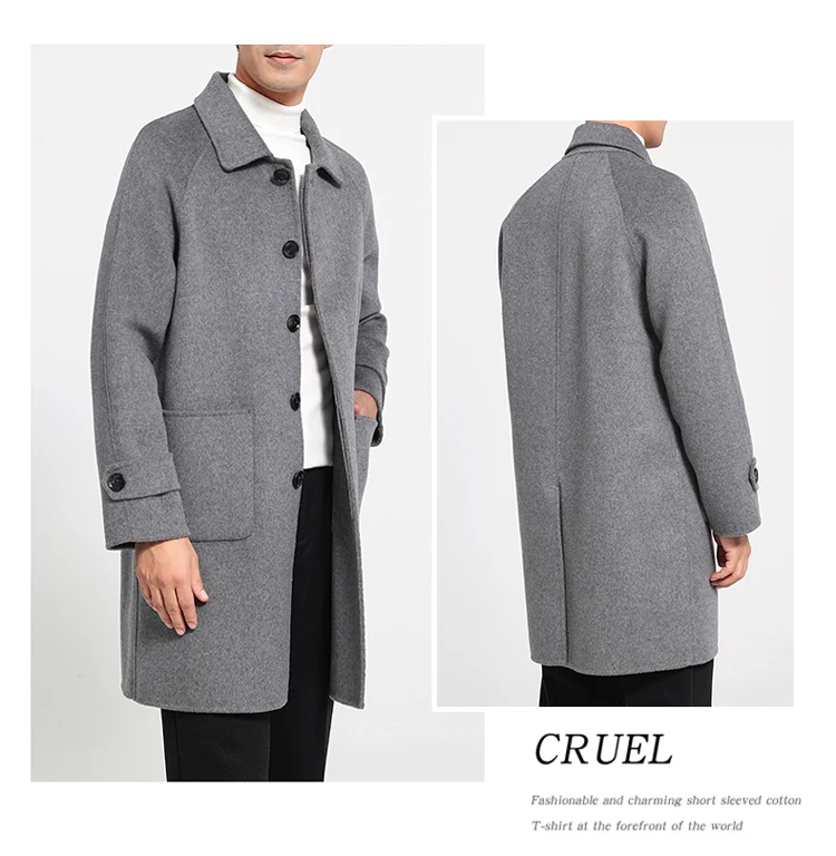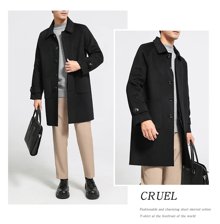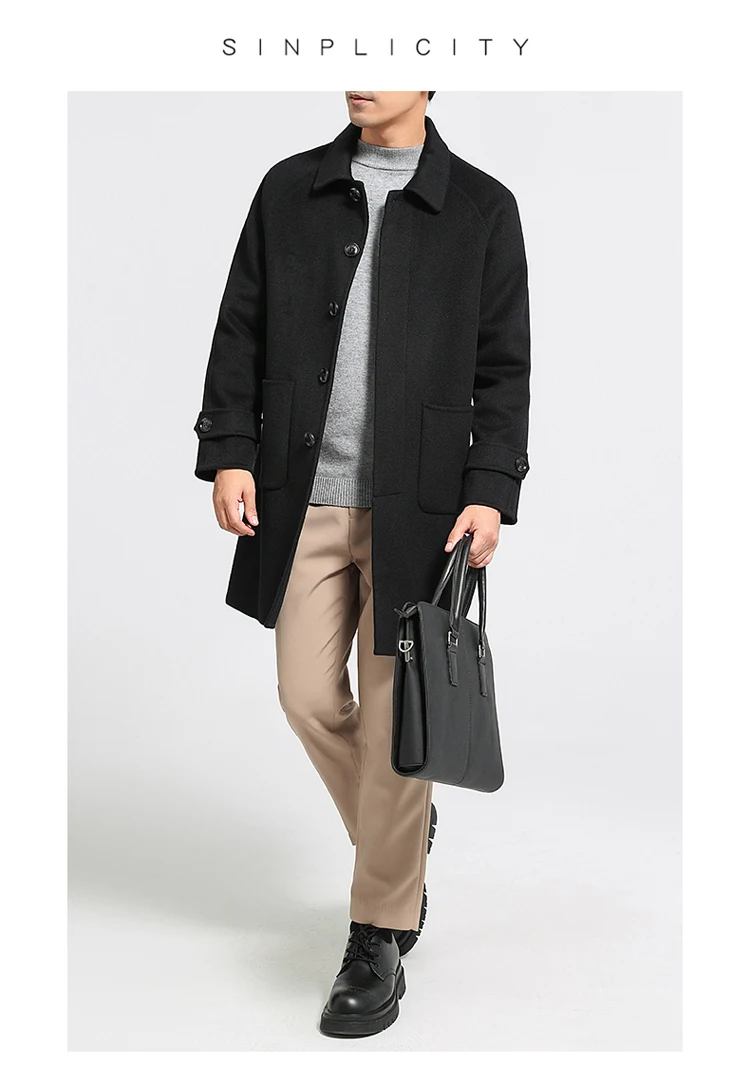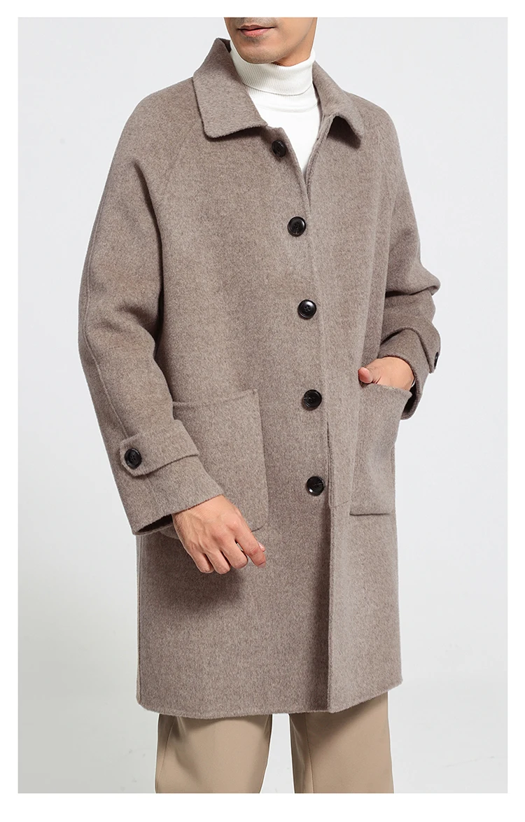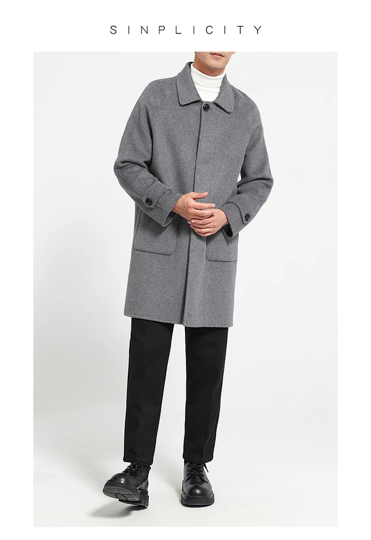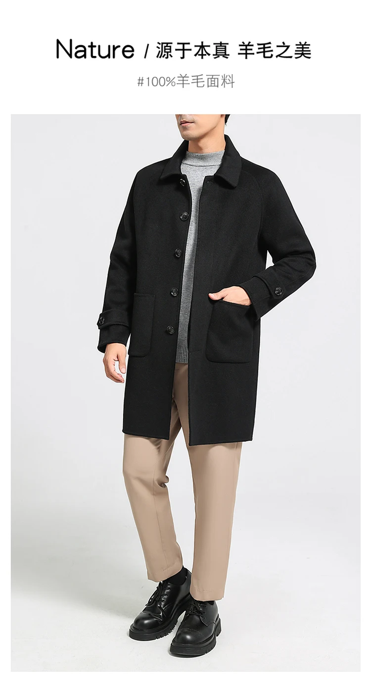 Mid-Length Single-Breasted Polo Collar Men's Overcoat Double-Sided Woolen 100% Pure Wool High-End Coat Fashion Men's Clothing