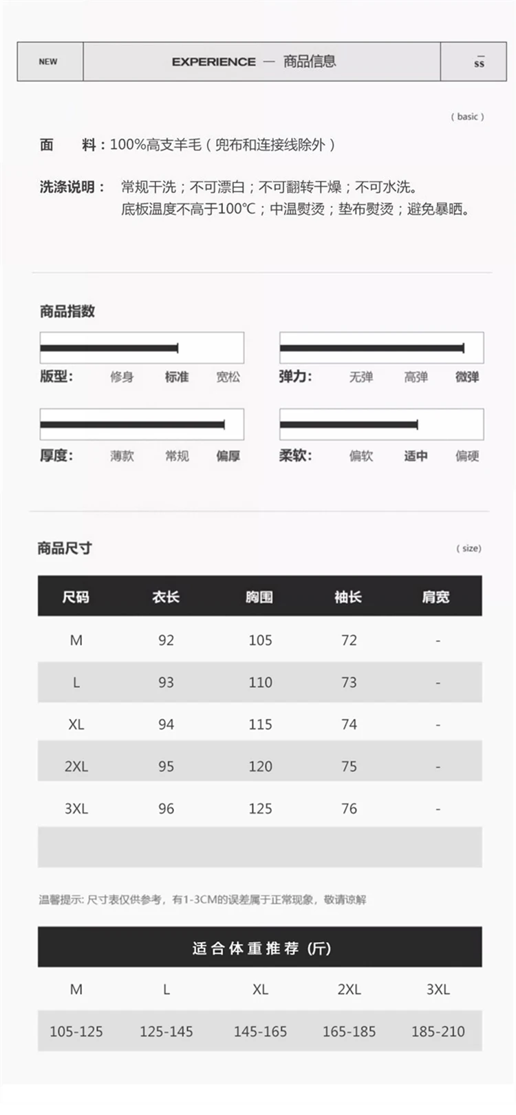 M?Bust 105cm?Coat Length 92cm?Sleeve Length 72cm?Shoulder Width /cm?Recommended Weight 52.5kg-62.5kg?