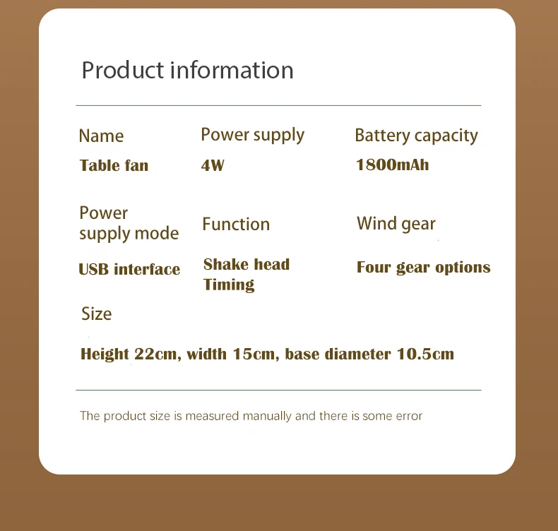 Mini Oscillating Fan, Portable Battery-Operated Table Fan with 4 Speed Levels, 6-inch Desk fan with Timer