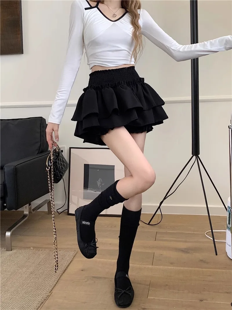 Mini Skirt Cute Sexy Balletcore Elastic High Waist Ball Gown Ruffle Patchwork Lo