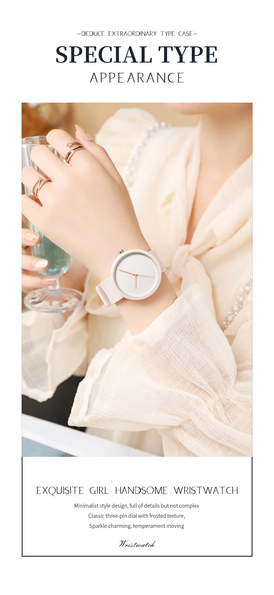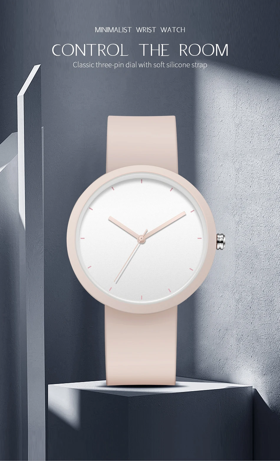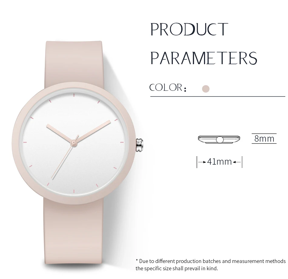 Minimalism Watch For Women 41mm Case with PVD Finish Rubber Strap