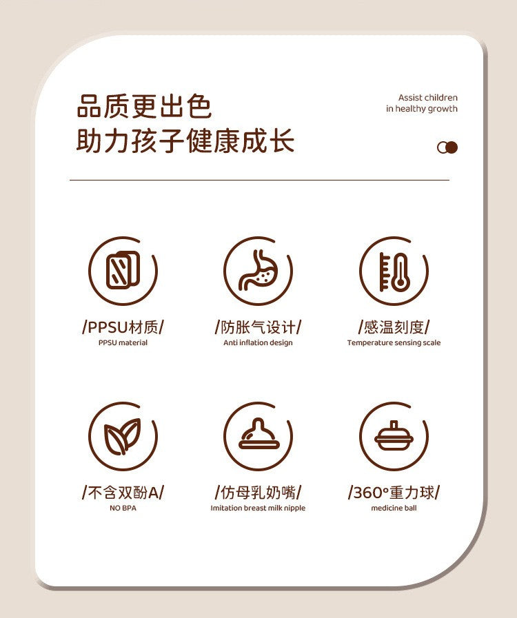? Minitutu ?Newborns aged 0-3-6 months, PPSU thermosensitive bottle/anti-colic, bottom return air exhaust