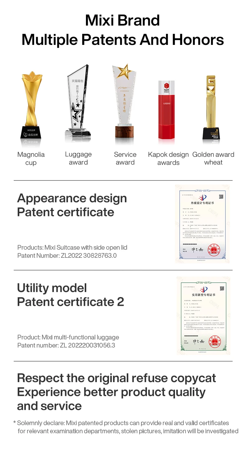 7. Mixi patent design, focus on luggage industry over 10 years, please believe Mixi brand power
