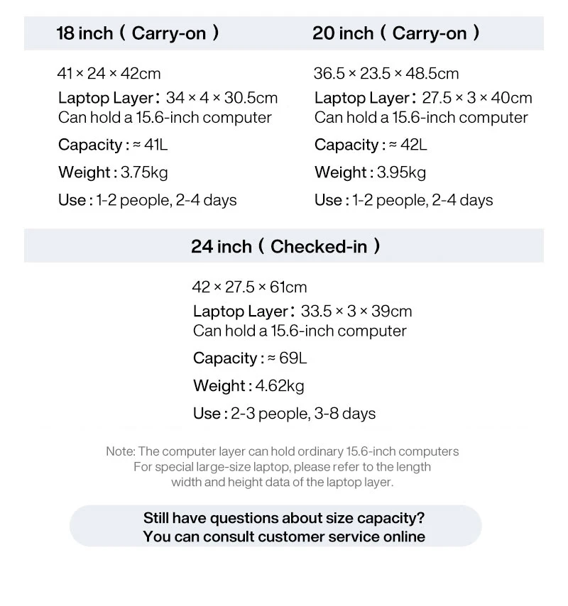 Dear friends, all of our products are excellent in materials and technology. Please keep the Luggage after-sales card and enjoy 3 Year Free Repair Warranty. Quality is ensured. Please buy with confidence.