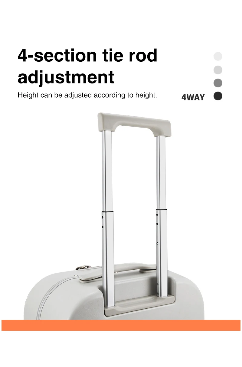 To judge a trolley case’s quality, the key point is its material. We use a new type of composite PC material, which constitutes the main structure of the trolley case.