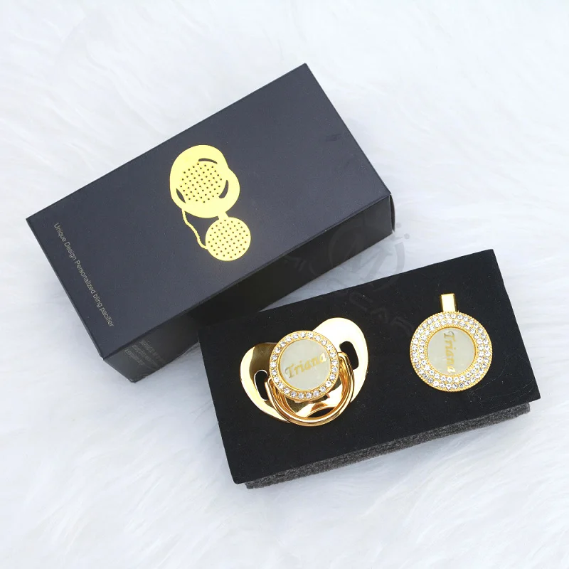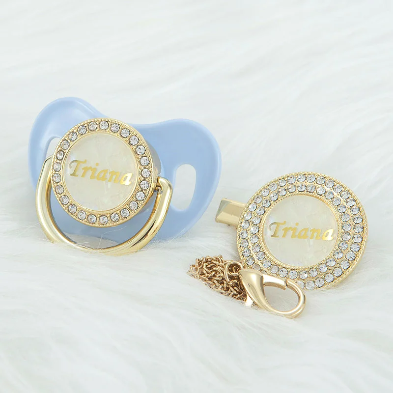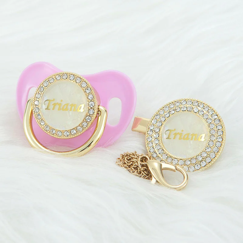 MIYOCAR custom gold pearl new color bling pacifier and pacifier clip BPA free dummy bling unique gift baby shower PS-1