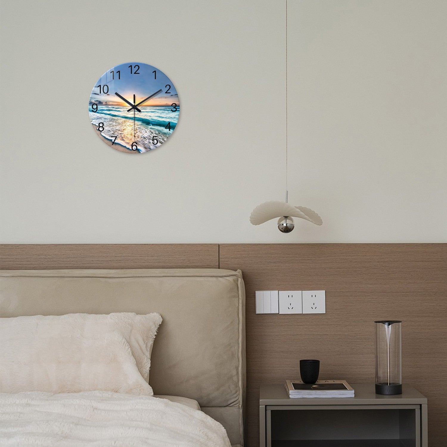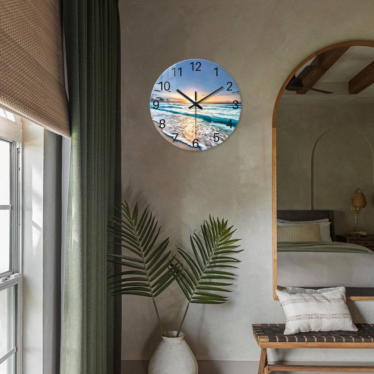 Modern Fashion Marble Texture Pattern 4mm Thickeneded Tempered Glass Wall Clock Living Room Bedroom Kitchen Home Decoration Wall Clock Silent Quartz Clock Holiday Gift 12 Inches 14 Inches 16inch (Without Battery)