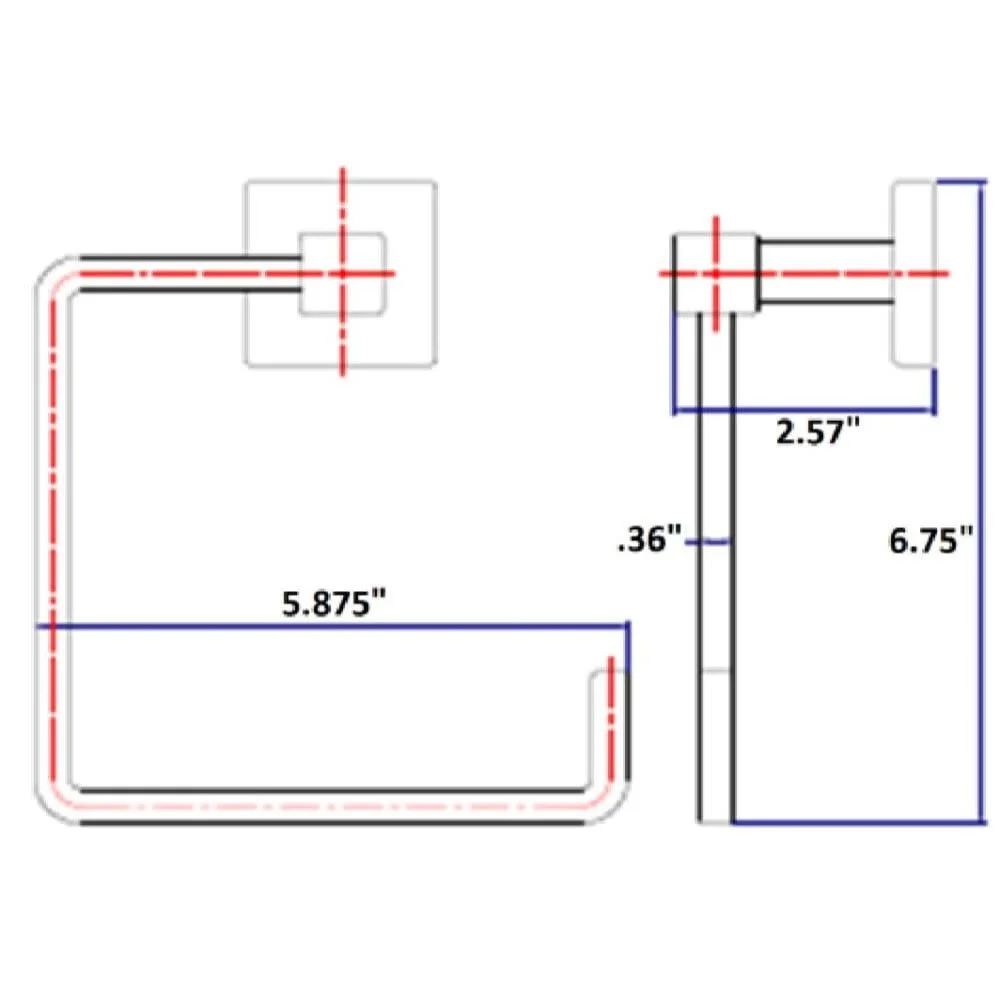Features: Modern style towel ring with a Satin Nickel finish, perfect for bathroom and kitchen spaces, Dimensions: 7. 75 in. H x 6. 63 in. W; Extends 3. 63 in. Manufacturer Part Number: 581447