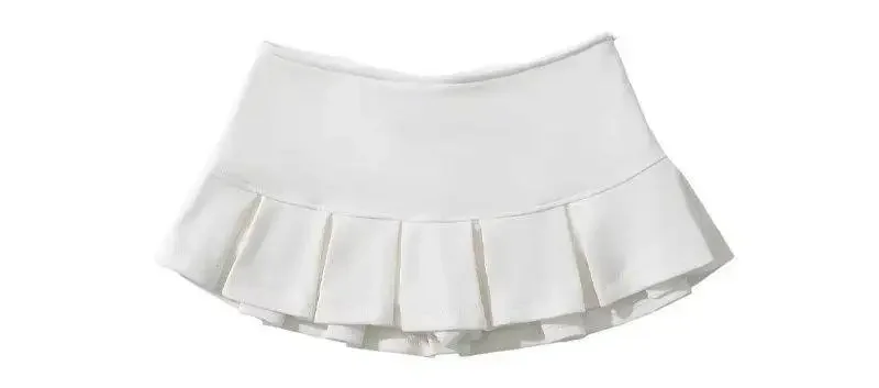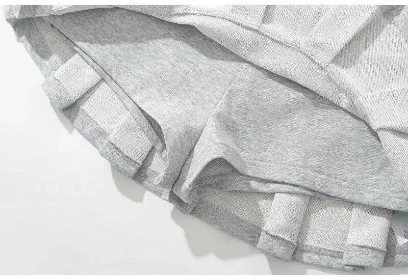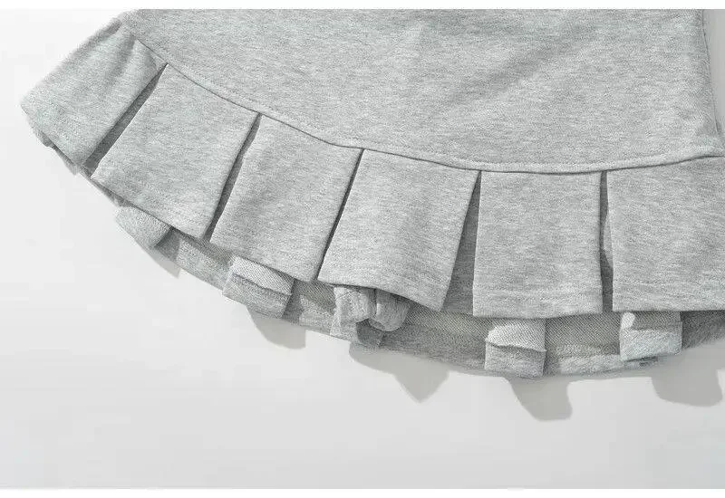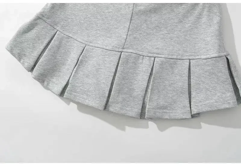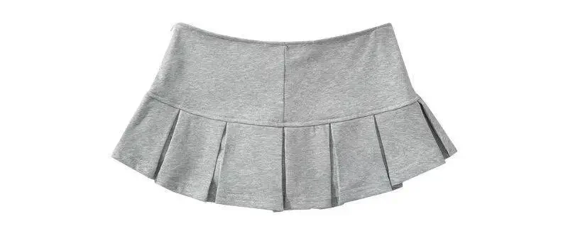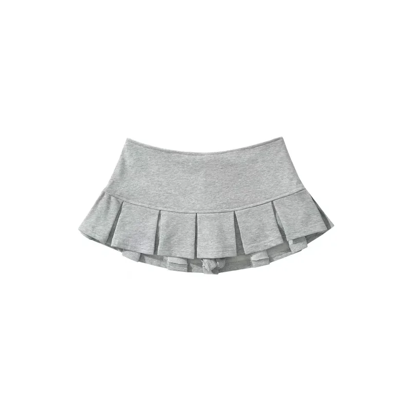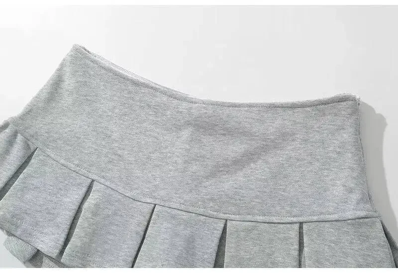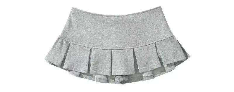 Mooyufon Fabric Y2K Mini Skirt Women Low Waist Wide Pleat Light Grey Sexy Vintag