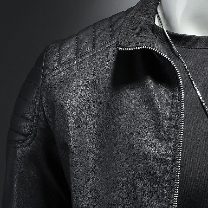 Motorcycle PU Leather Jacket Men Winter Leahter Jacket Male Stand Collar Casual Windbreaker trendy mens clothing black blue coat