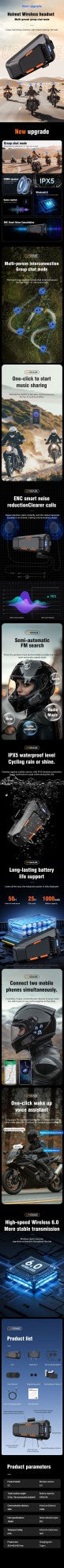 Motorcycle riding waterproof multi-person networking group chat intercom helmet bluetooth headset 6.0