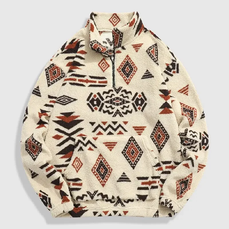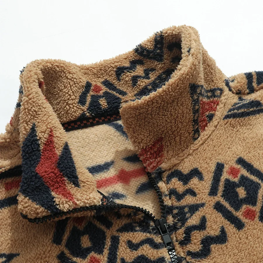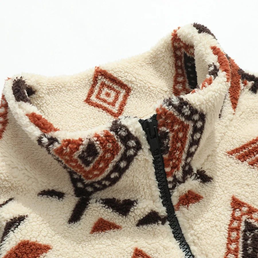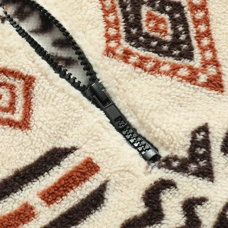 Ms Aztec National Printing Ultra-fine Austrian Fleece Jacket Zipper Lady