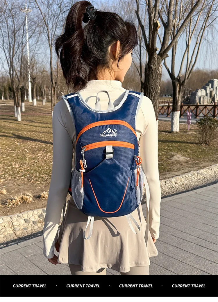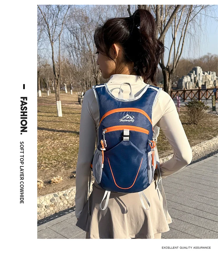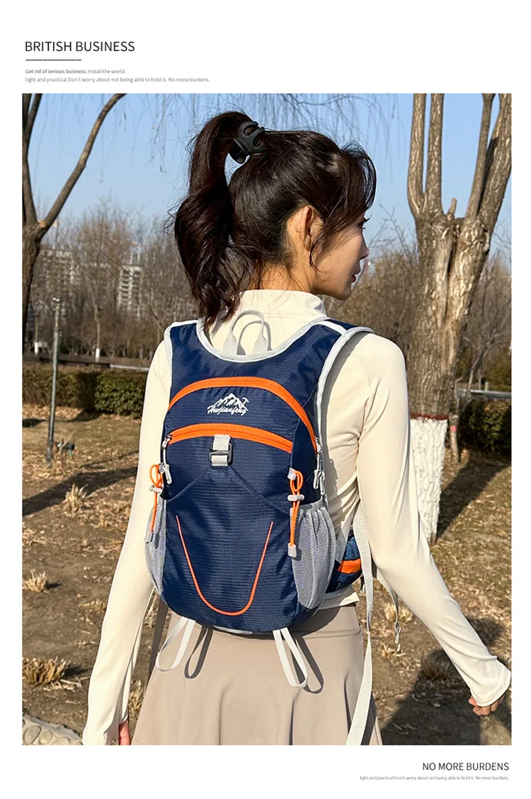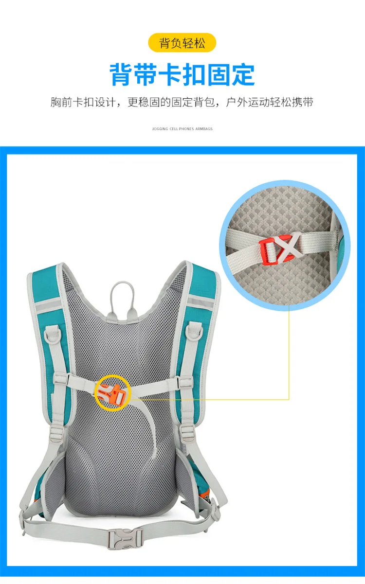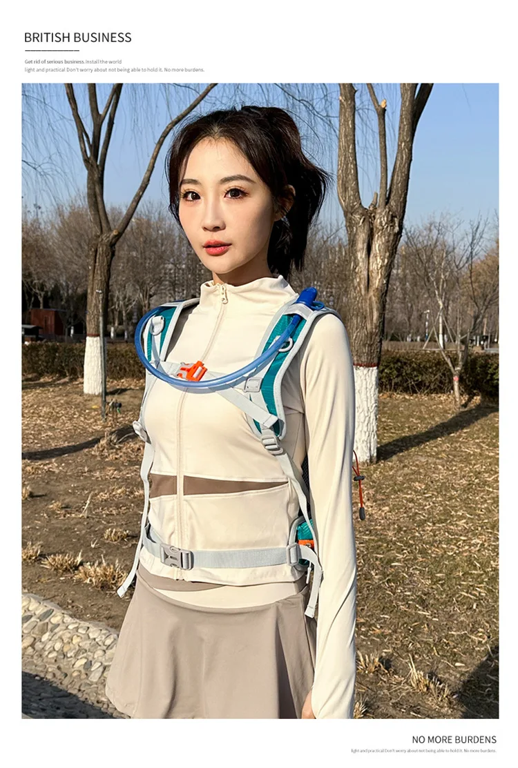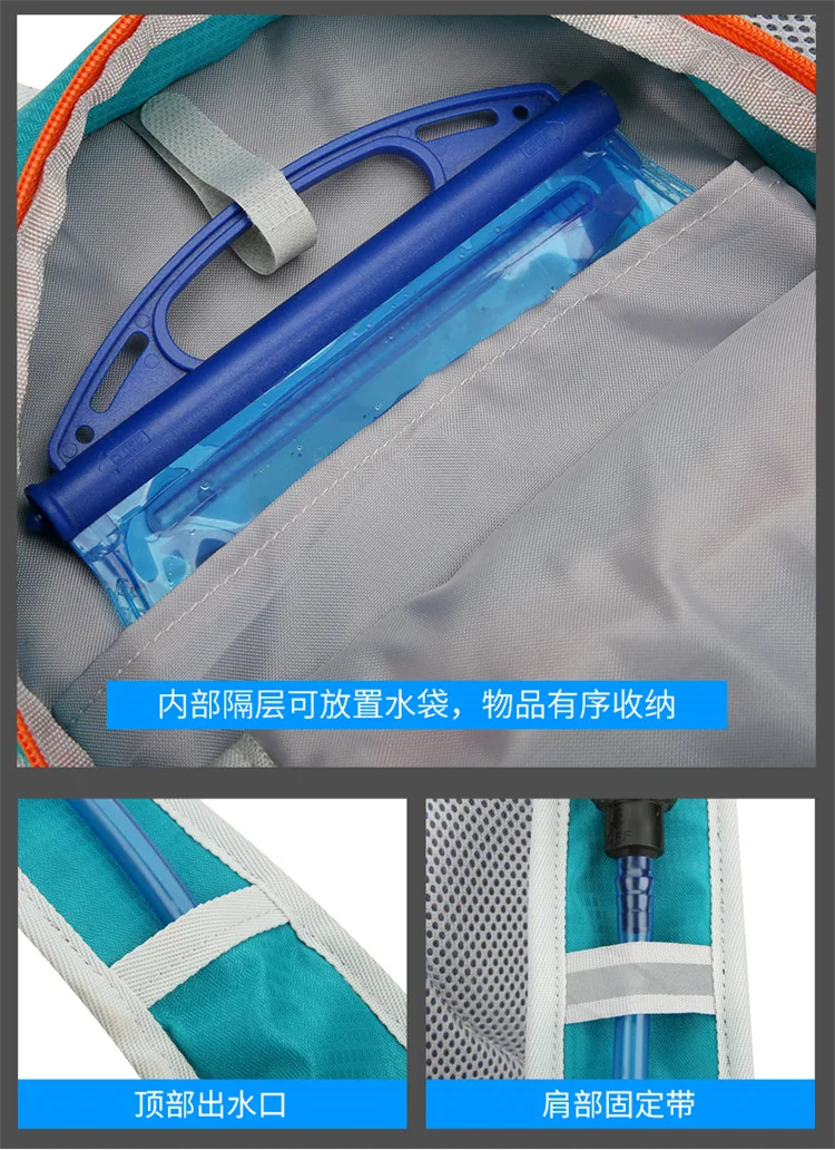 The carrying system of the water bag backpack is composed of breathable mesh and steel ring, which is very breathable and can adjust the force distribution according to your body curve to increase the comfort of use. The shoulder strap of this mountaineering backpack is S-shaped, with three-layer thickened anti-shock and anti-slip design, providing you with a comfortable shopping experience.