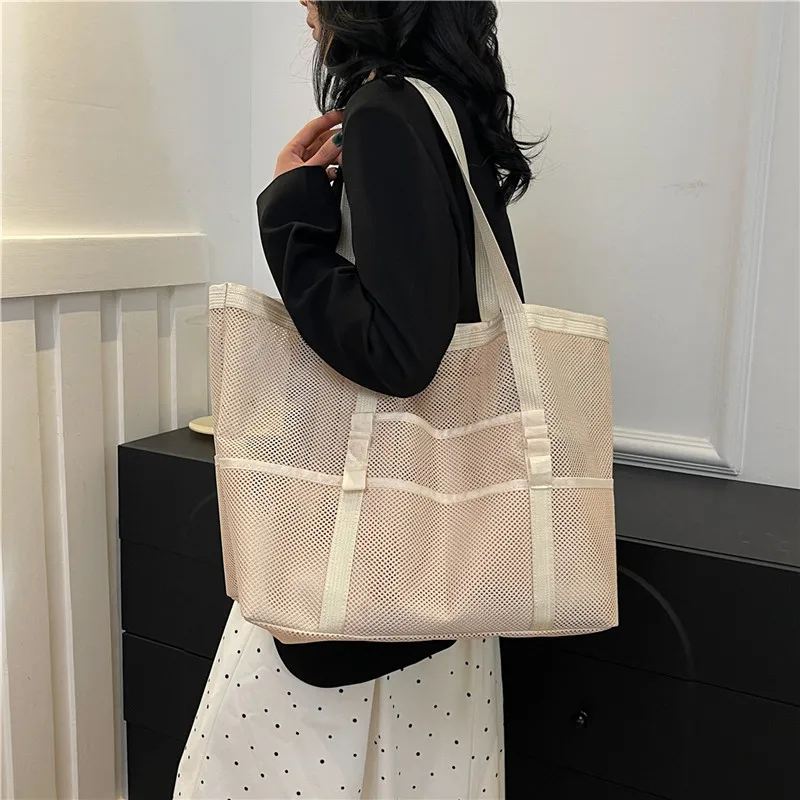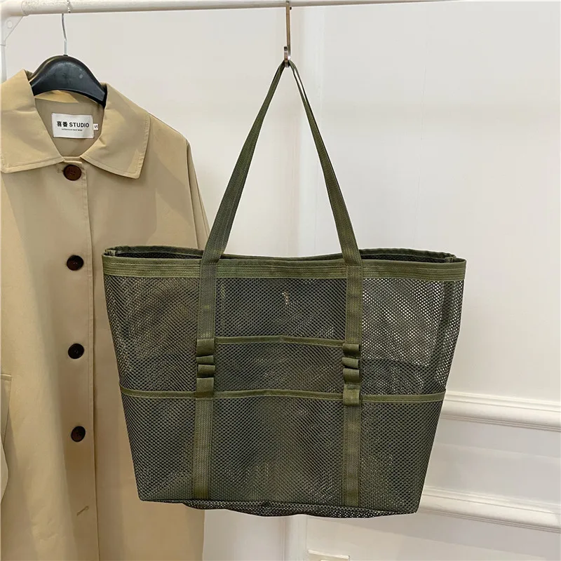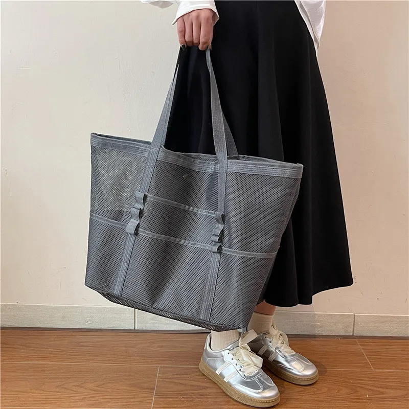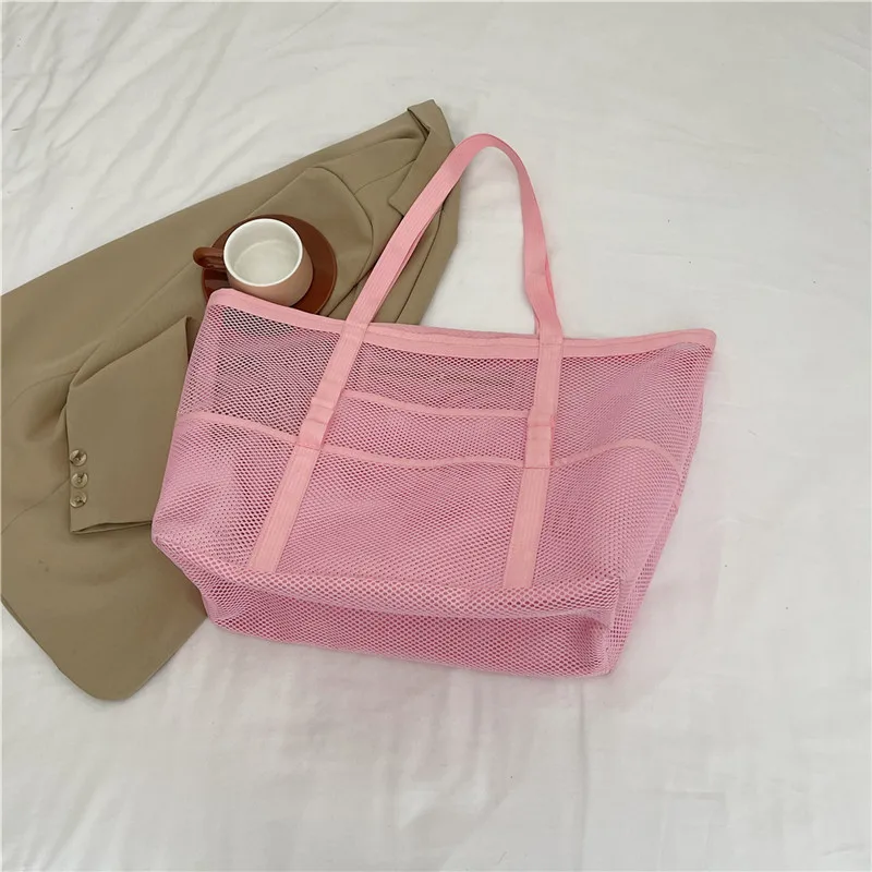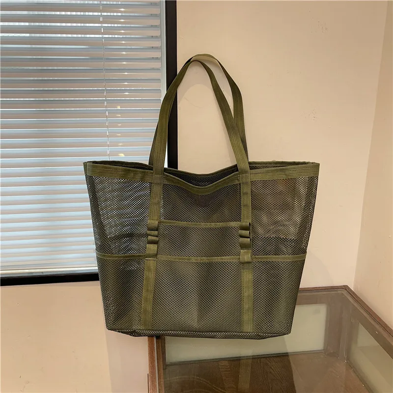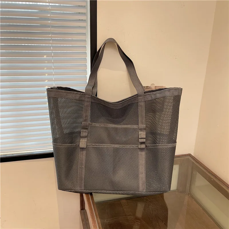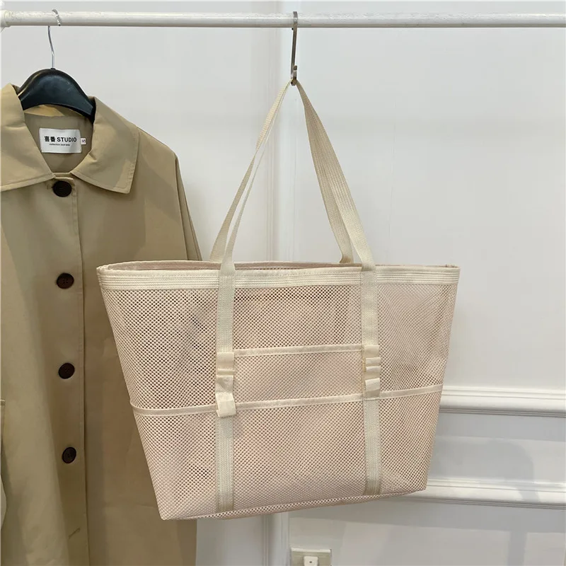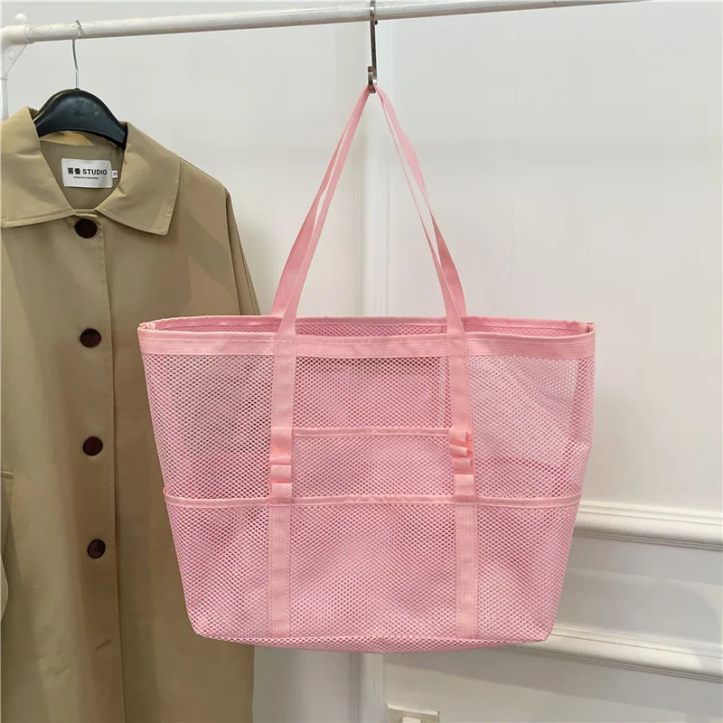 Multipocket Summer Large Beach Bag For Towels Mesh Durable Beach Bag For Toys Waterproof Underwear Pocket Beach Tote Bag