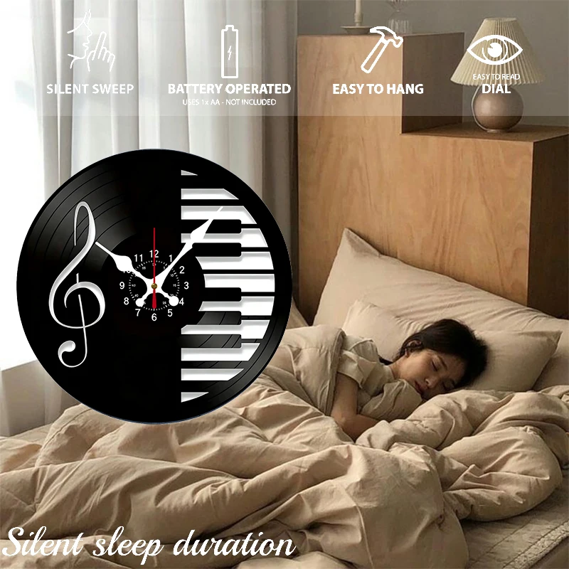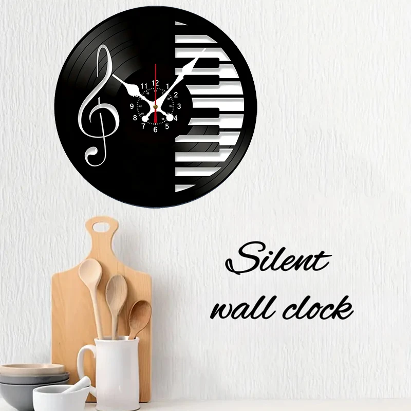 Music Notes Wooden Round Silent Hanging Wall Clock, Suitable For Living Room, Office, Study Room, Bedroom, Home Decoration