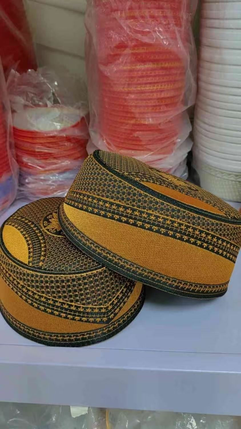 Muslim Wedding Hats Men Embroidered Flat Tops Eid Ramadam Prayer Ethnic Cultural Islamic Hat Gift Bonnet Turky Blue Gold Caps
