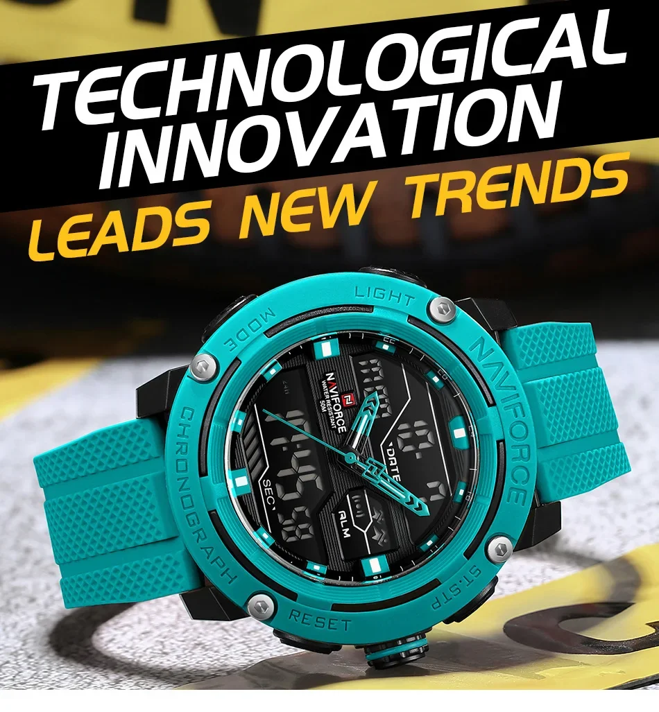 NAVIFORCE Sport Watch for Men Waterproof Dual Display Quartz Wristwatch Mens Digital Date Clock Military Stopwatch Reloj Hombre