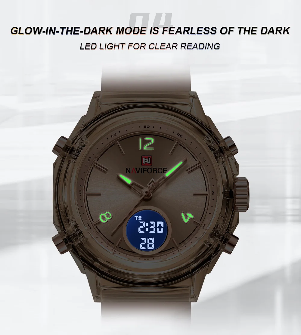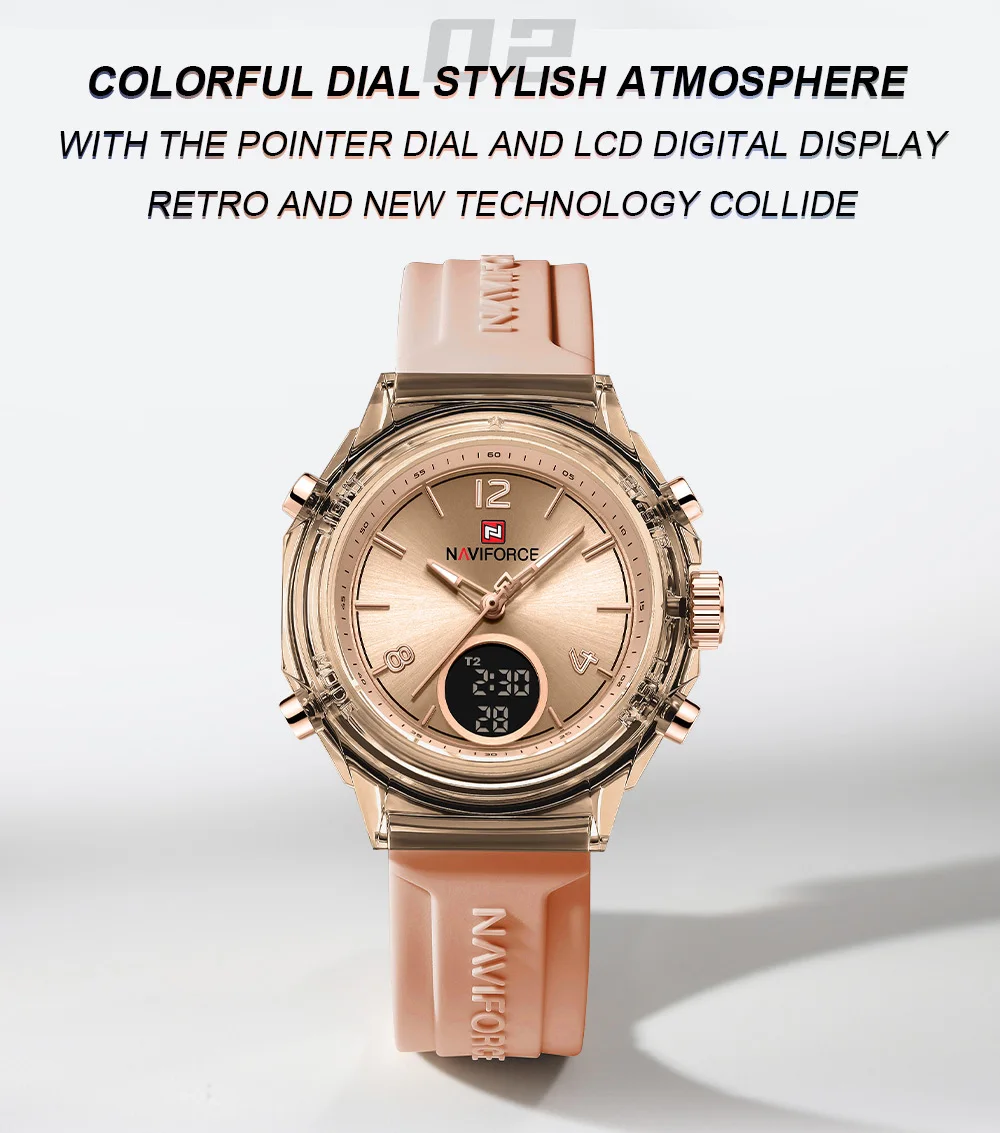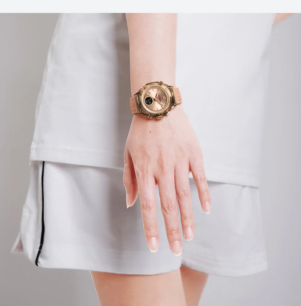 NAVIFORCE Top Brand Women's Watch Outdoor Sports Waterproof Watches Dual Time Display Quartz Wristwatches Rubber Digital Clock
