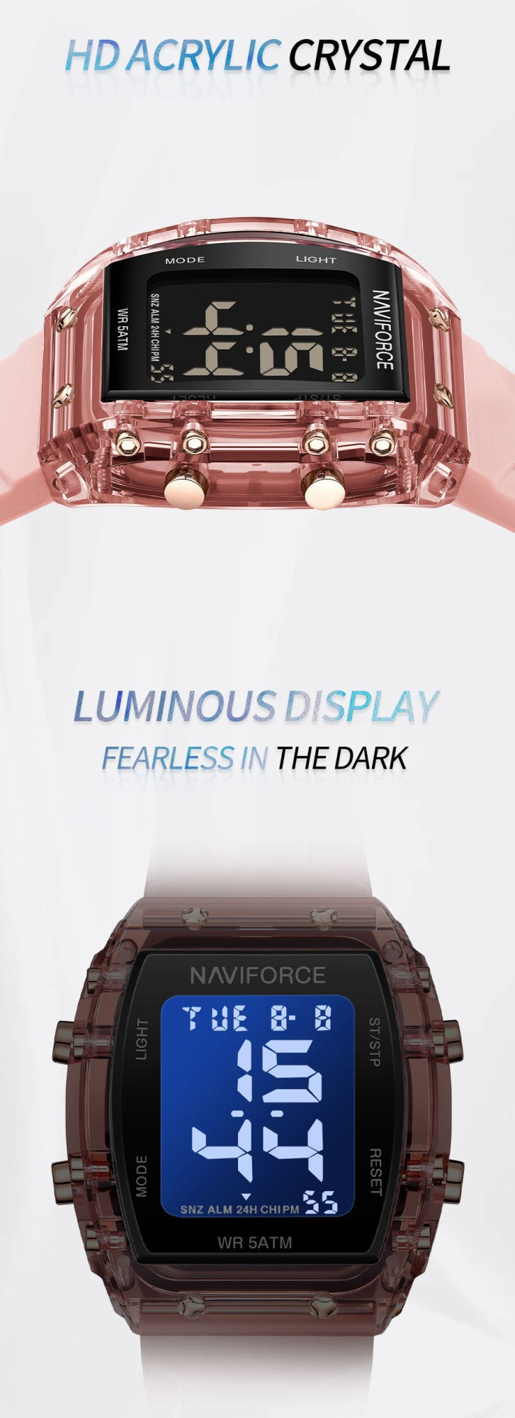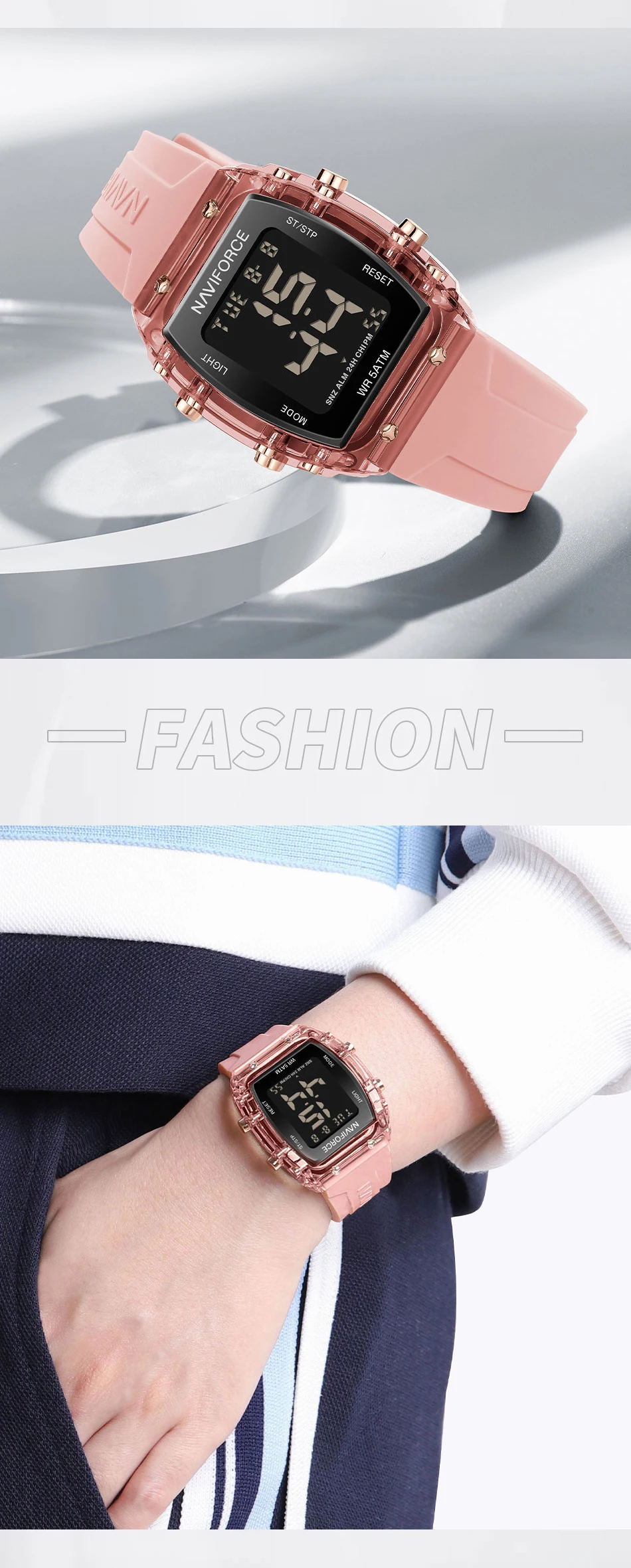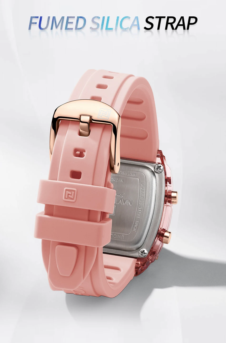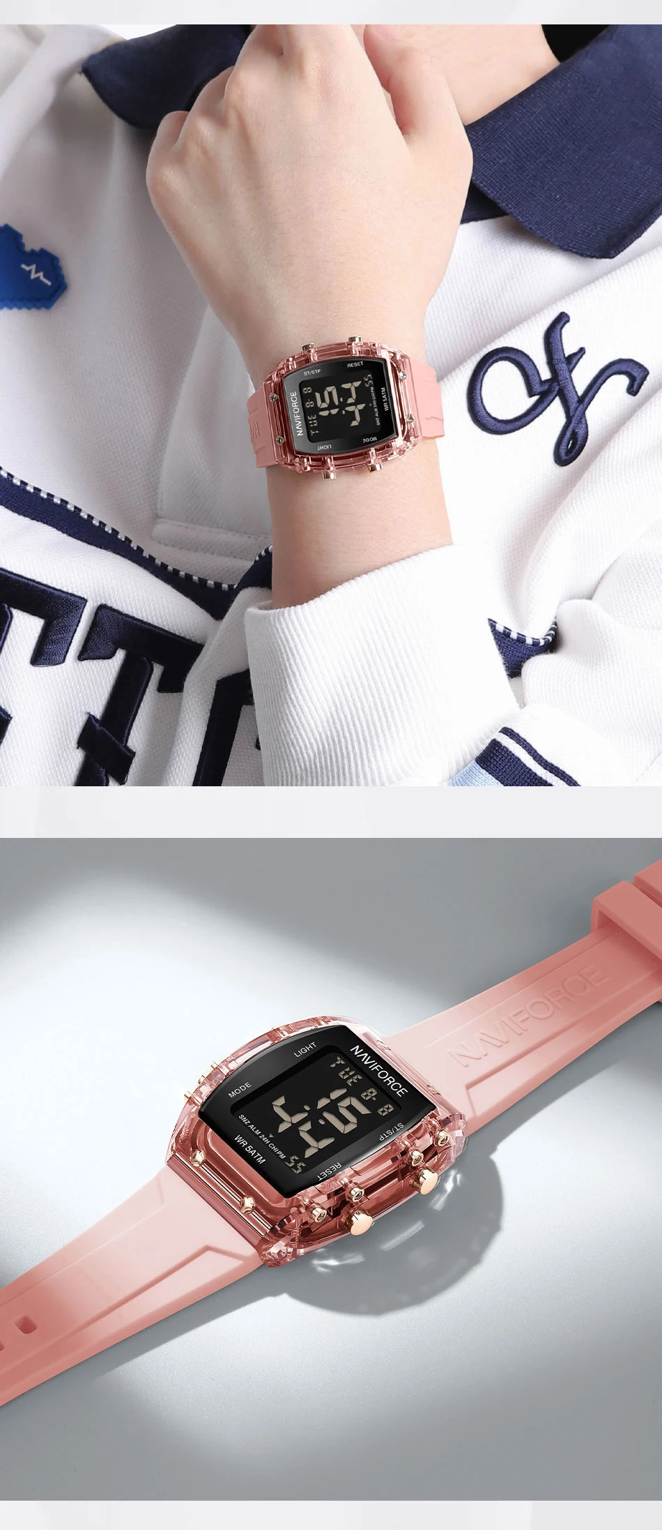 NAVIFORCE Watches for Woman LCD Digital Movement Female Clock Fashion 50m Waterproof Silicone Band Sport Electronic Wristwatches
