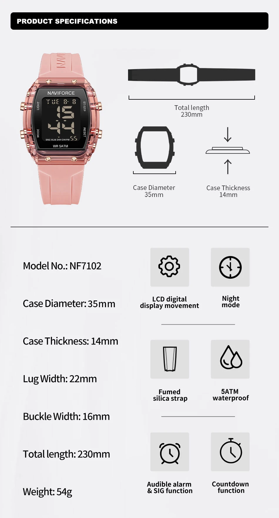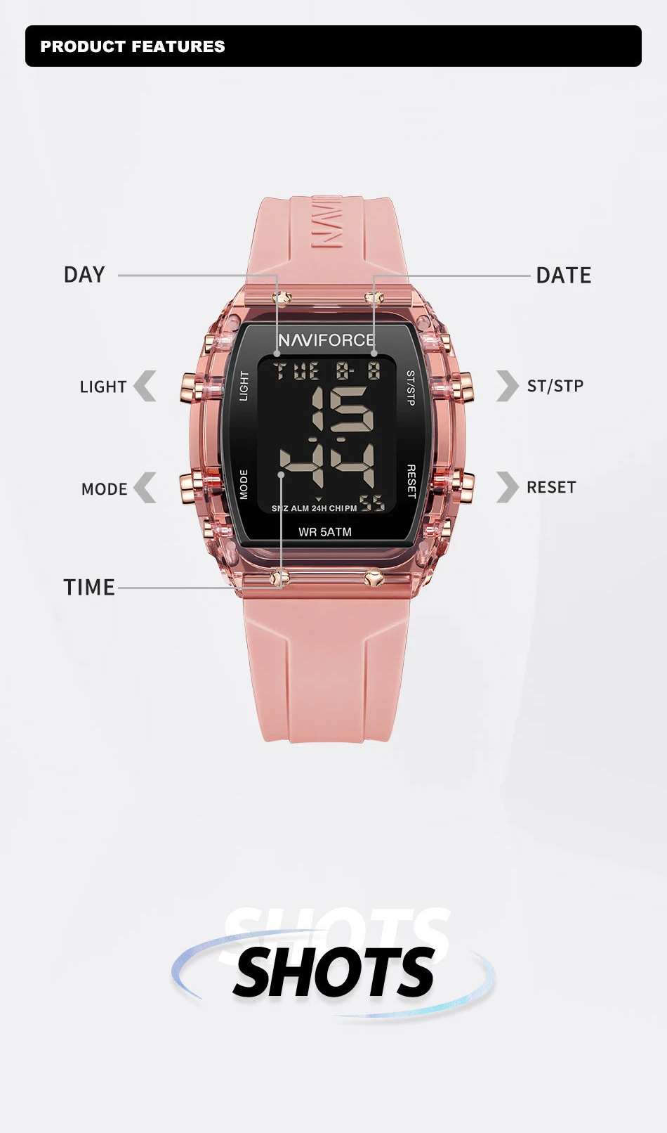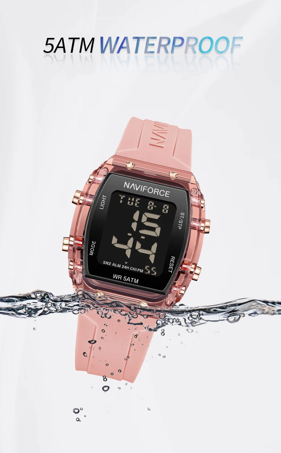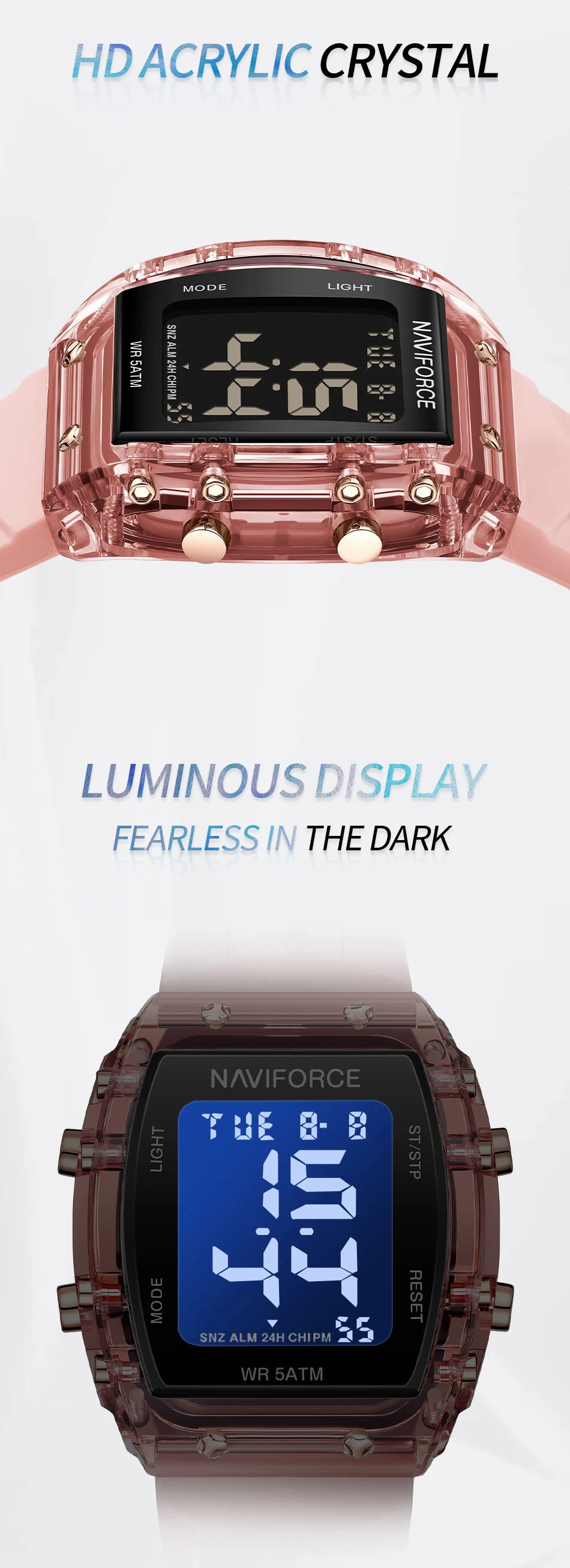 NAVIFORCE Watches for Woman LCD Digital Movement Female Clock Fashion 50m Waterproof Silicone Band Sport Electronic Wristwatches