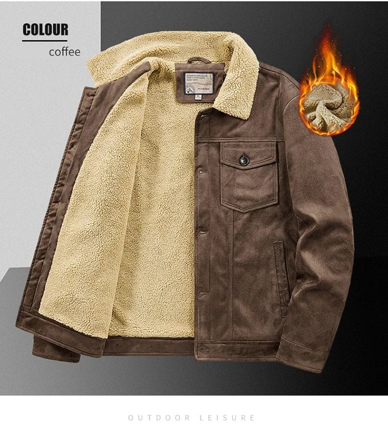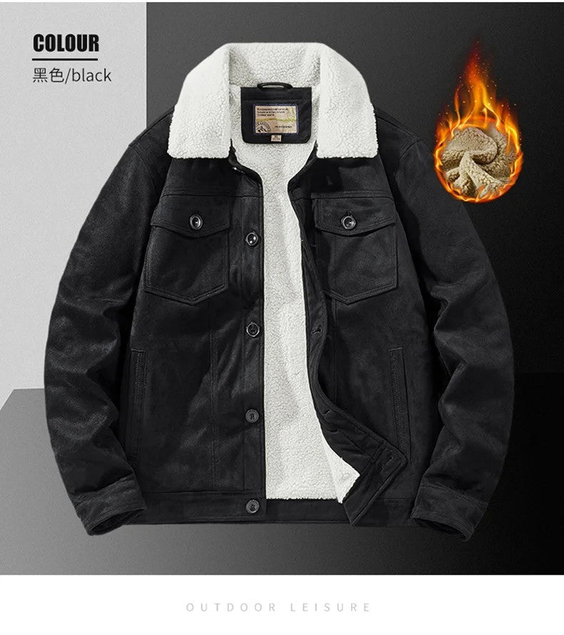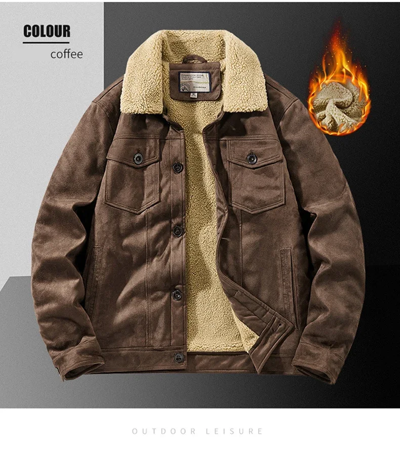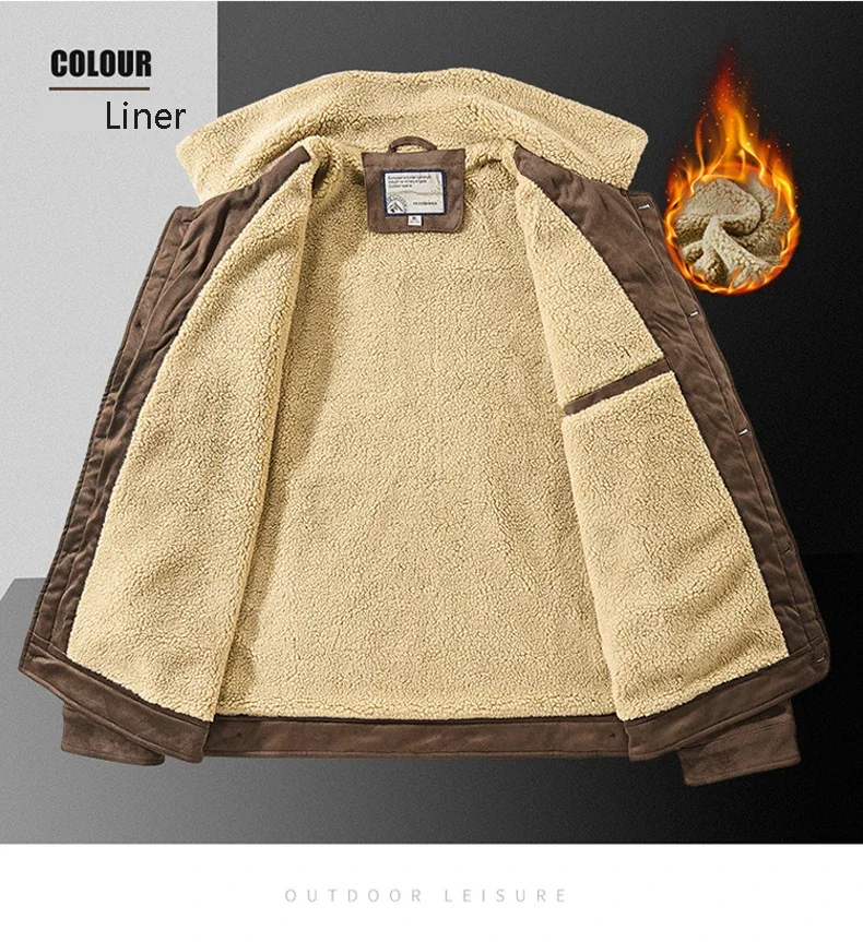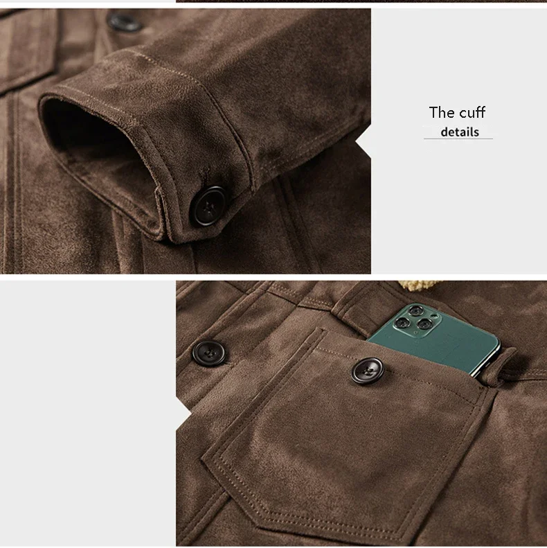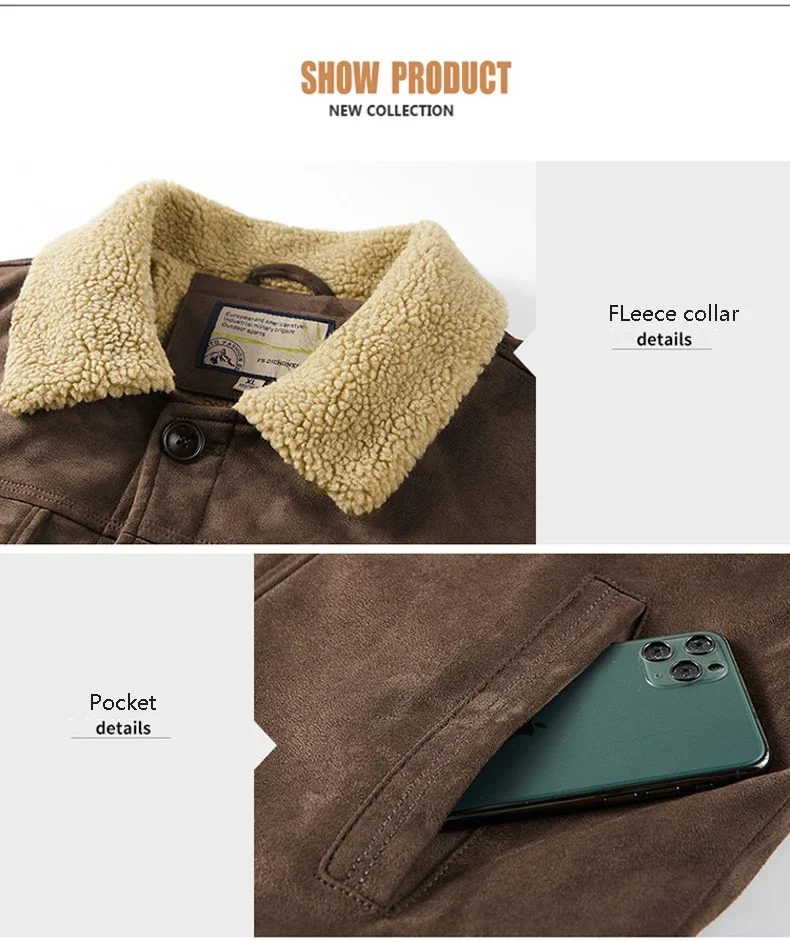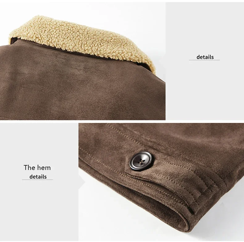 NEEDLESNOAH Autumn Winter Men Warm Pilot Jackets Fleece Suede Thick Coats Male Single Breasted Classic Parkas Fahion Windbreaker