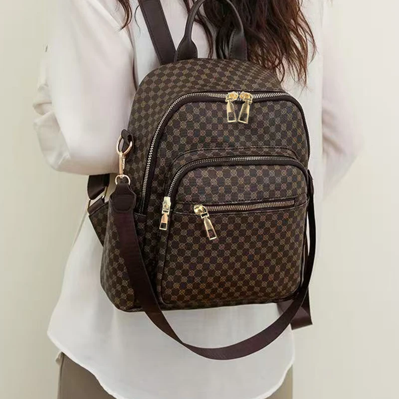 Neutral color backpack for men and women with multi-layered pockets and colorful design for schoolbags